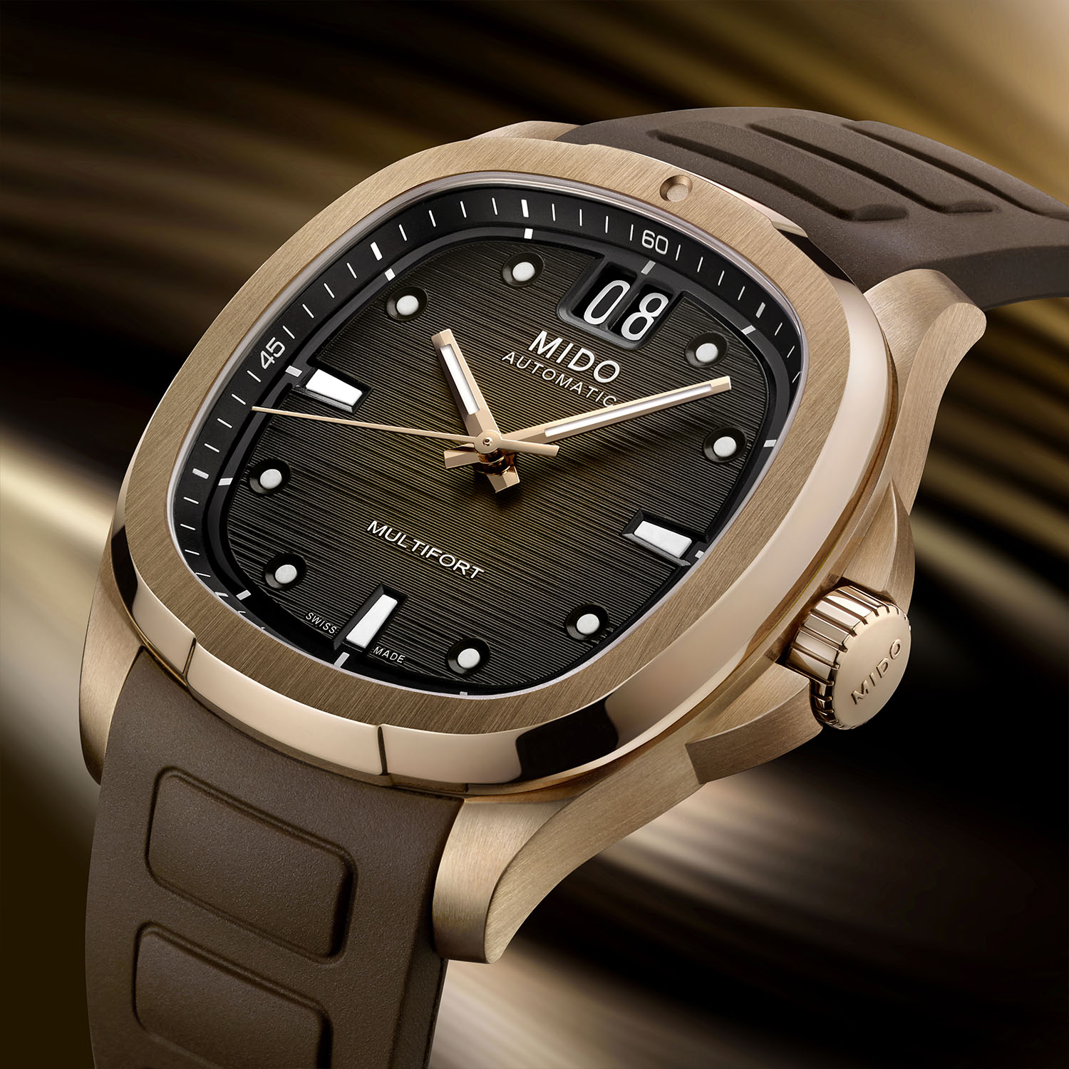 The Mido Multifort TV Big Date in rose gold PVD retails for CHF 1,170 or EUR 1,300. For more information, please consult midowatches.com.