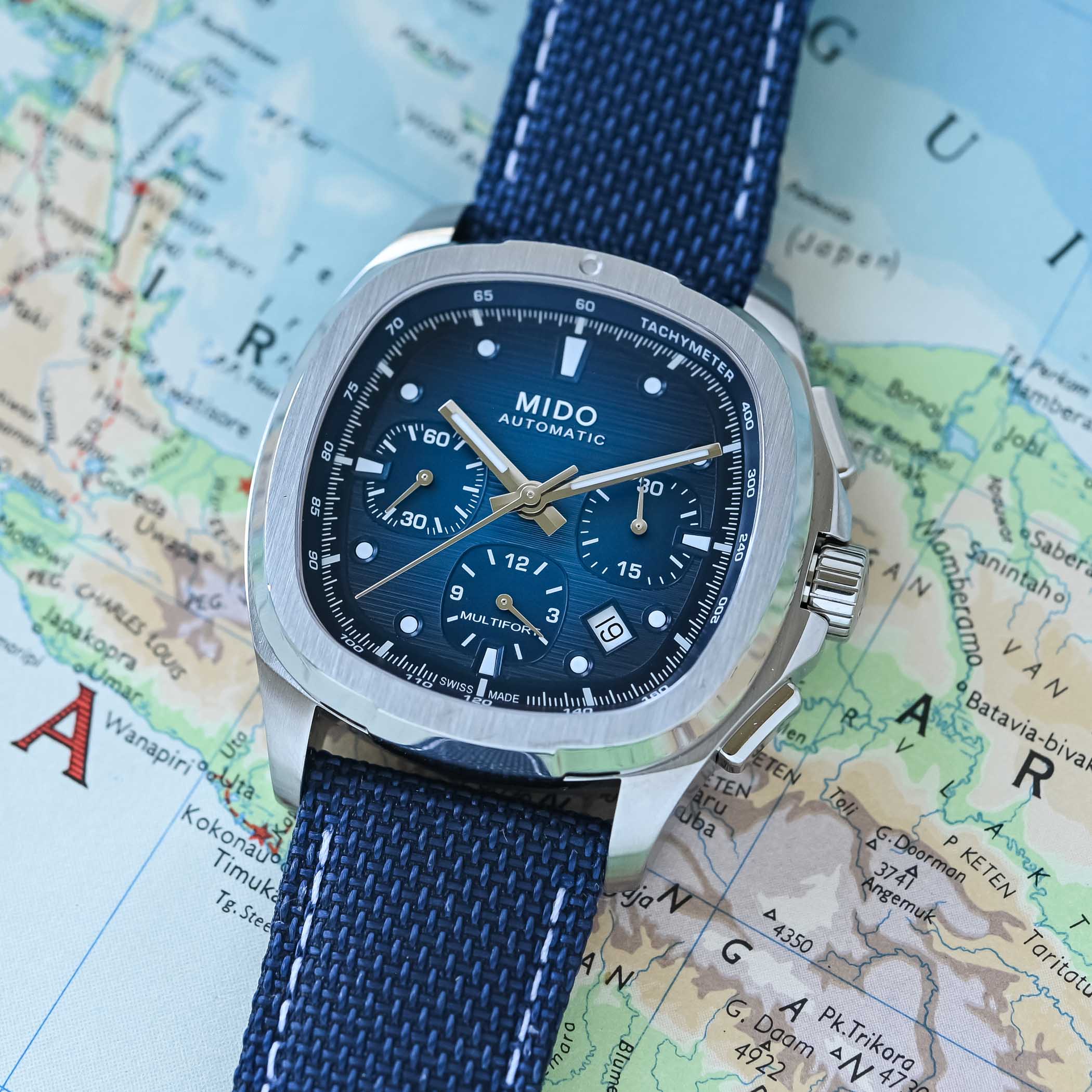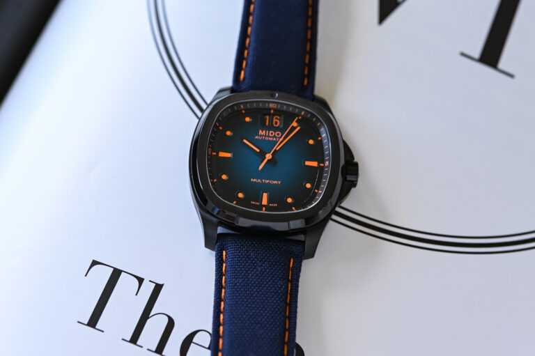 Mido offers the Multifort TV Chronograph on a stainless steel bracelet with polished centre links, a folding clasp and quick-release push pins similar to its Big Date siblings. In addition to that, you also get a blue or black synthetic fabric strap with a pin buckle. The price is set at CHF 2,270 or EUR 2,490 for either of them, which is quite fair given the solid specs it brings to the table!