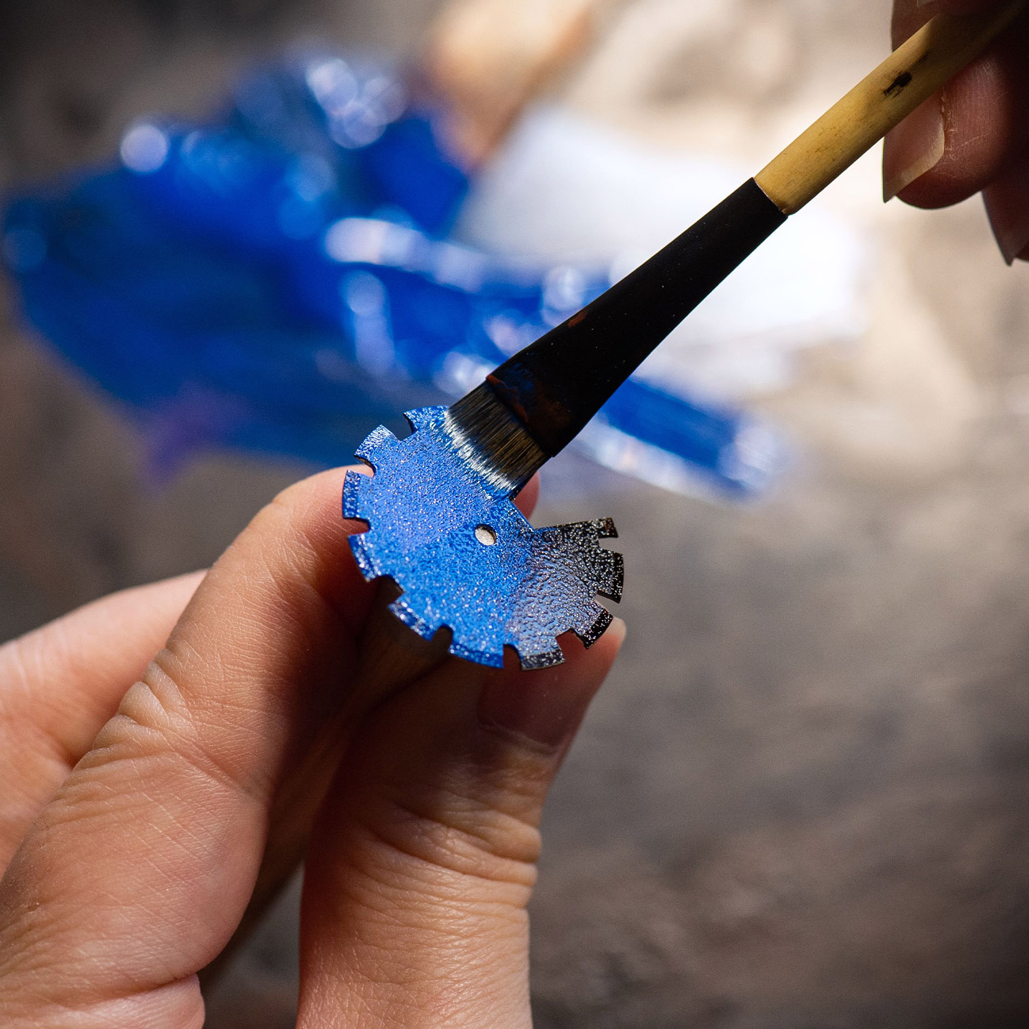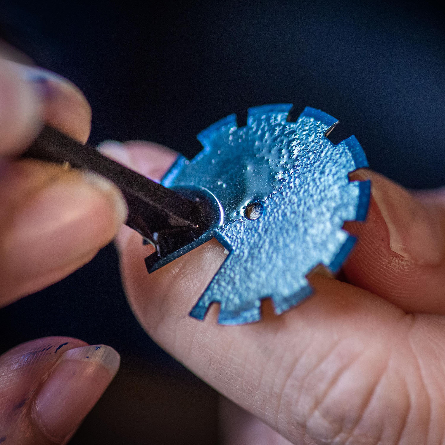 Instead of a lacquered hammered copper dial, the new model features a deep blue Urushi silver Maki-e dial. Urushi lacquer is derived from the sap of the Urushi tree that is native to Japan, Korea and China. A traditional technique practised for centuries in Japan, Urushi lacquer creates deep and pure colours. Another distinctive Japanese lacquerware technique, Maki-e consists of sprinkling powder on the lacquer surface before it dries. In this instance, silver dust is used. Another layer of translucent lacquer is then applied as protection. The process is repeated twice to create a greater sense of depth to the mysterious, shimmering blue lacquer.