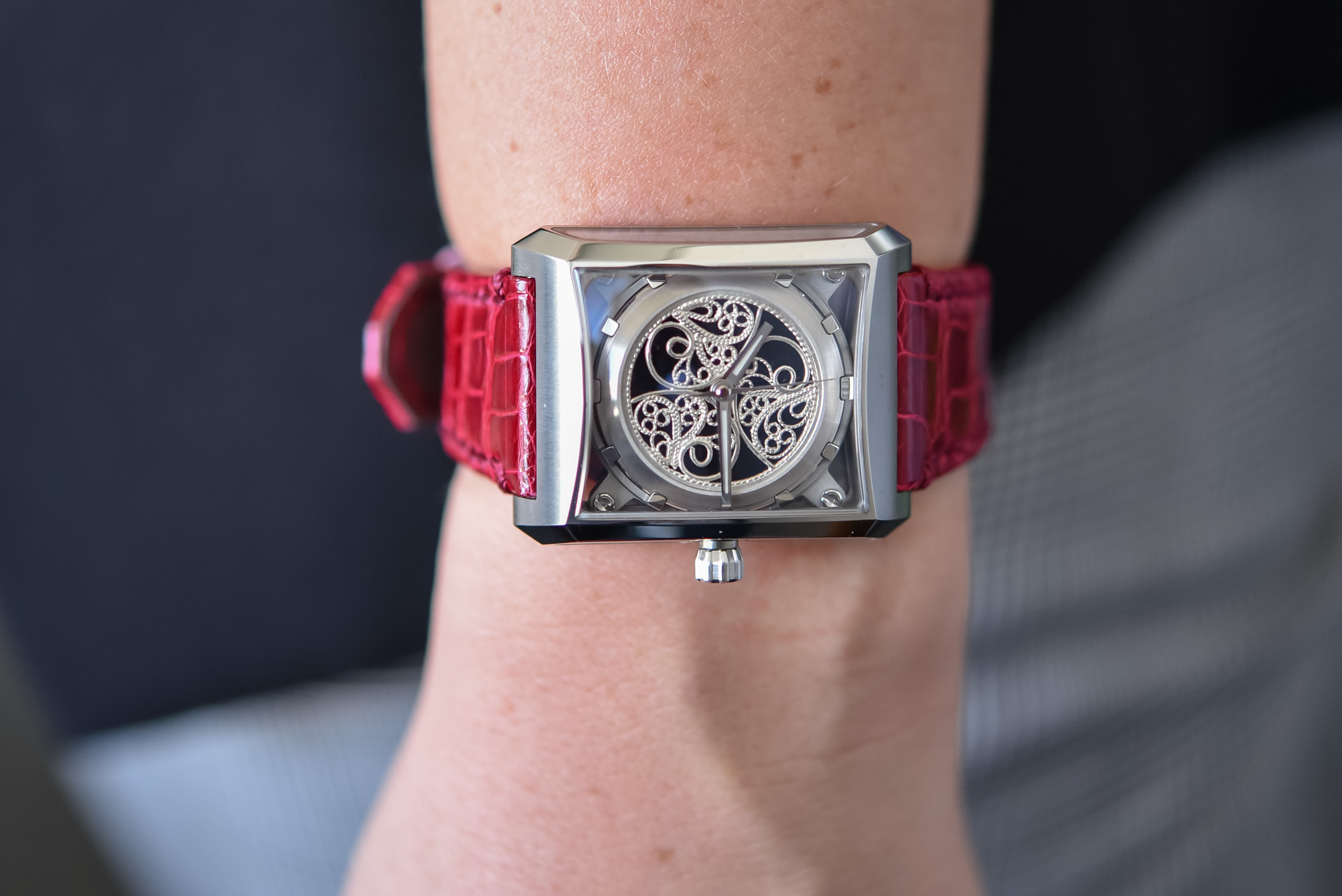 Quick facts: steel case – 32mm x 40.3mm x 11.6mm – 5 sapphire crystals with A/R coating – water-resistant to 50m – automatic movement (base ETA2671) – alligator leather strap with folding buckle – CHF 5,380