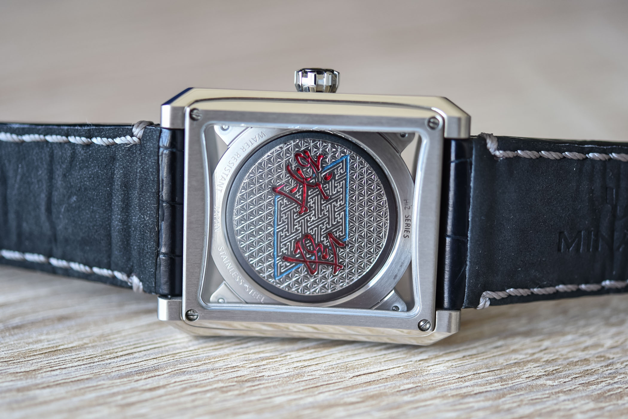 Traditional carving is performed for Minase by Kenji Kanagawa. The craftsman engraves either two or four sides of the cases with customized patterns. The dial is hand-decorated in a traditional Japanese style and customized to the clients’ choice with a Kanji.