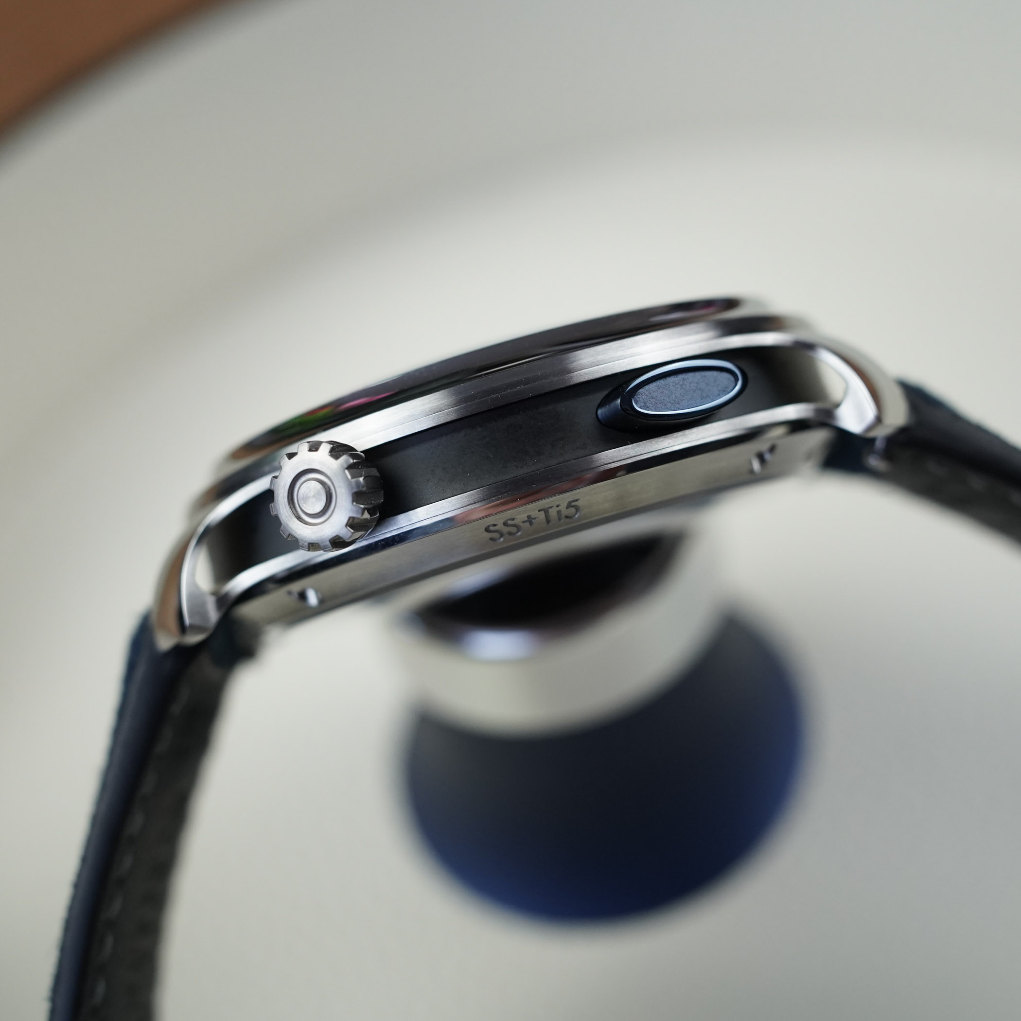 The collection now enters the next stage, with the 20.01 Series 5. By looks, it is instantly recognisable as a MING. But looks don’t mean everything, as there’s more to this watch than meets the eye. At 41.5mm in width and 14.2mm in height, I would say it’s a rather sizeable yet wearable watch, at least compared to the usually compact cases of MING. The case is made from stainless steel and grade 5 titanium, and is constructed from no fewer than 34 parts. It’s finished in four ways, with brushed and polished details, a black DLC-coated titanium centre case and blue PVD-coated pushers. The flared lugs are another signature styling element not to be overlooked.