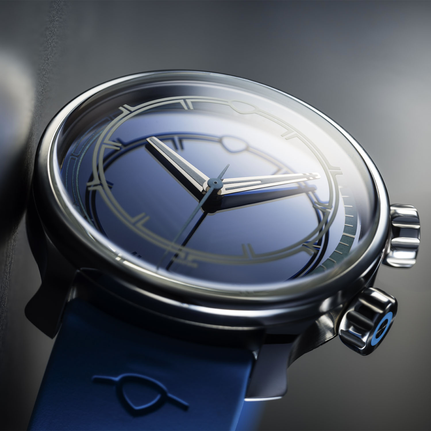 Ming’s new dive watch comes with a blue moulded FKM rubber strap, 20mm curved bars and a quick-release system. The strap, which has an oval shape to follow the natural contours of the wrist, is closed by a “flying blade” tuck buckle with micro adjustment. The strap will soon be available as a standalone accessory in other colours and lengths and adaptable to all other MING watches with a 20mm lug width.