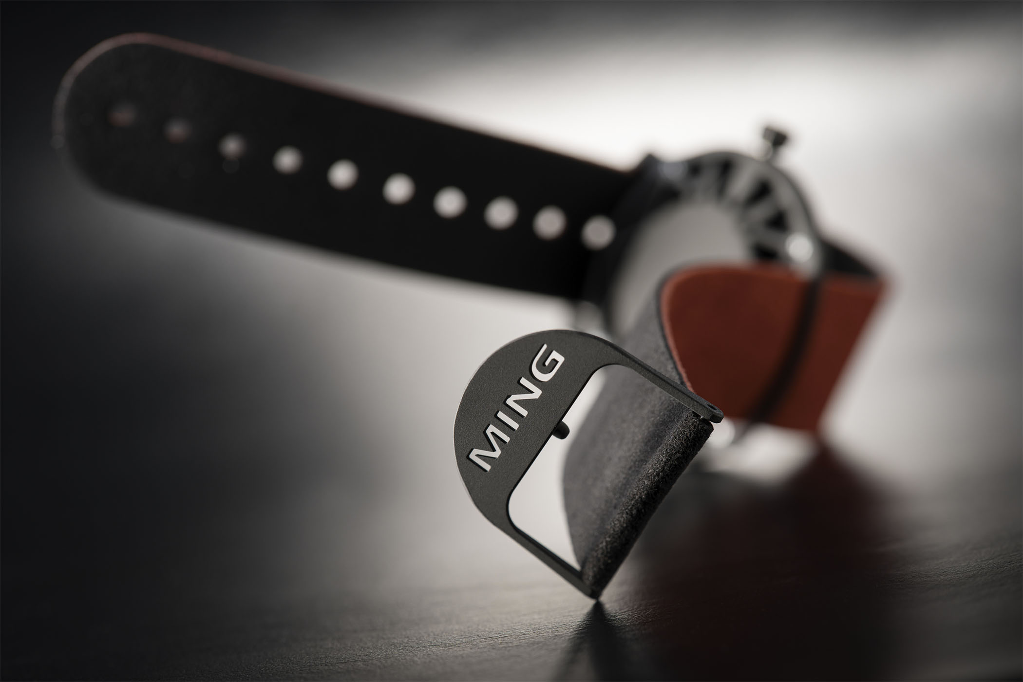 Instead of using a traditional case construction, the Ming LW.01 fuses a hat-shaped dial ring and movement holder, supported from the rear by a cage with 3D struts to avoid damage to the dial and movement. The entire assembly is capped and sealed to the bezel, which is very narrow and internally hollowed to save weight. Both models share a case diameter of 38mm and a thickness of 6.5mm, with the brand’s signature flared lugs and ergonomic crown.