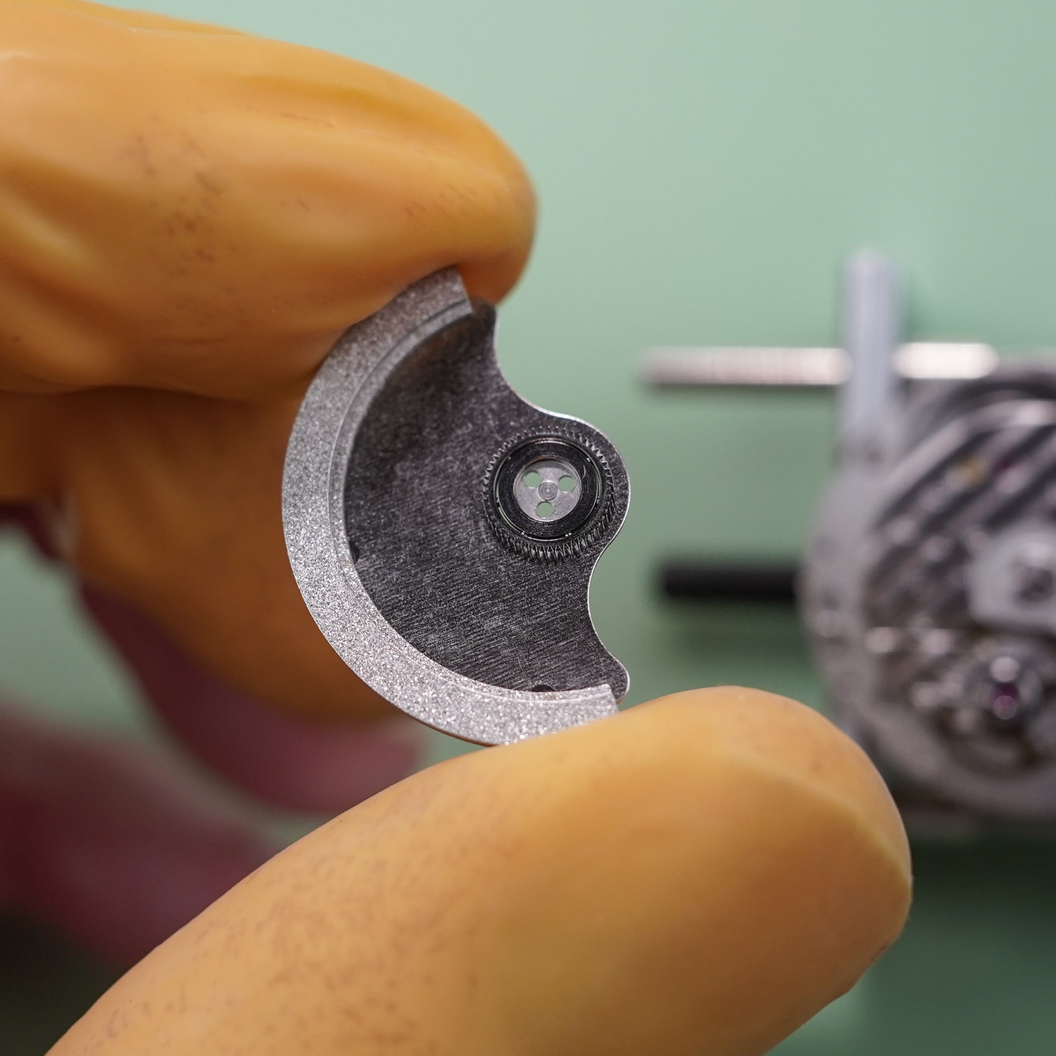 Dismantling the movement starts with removing the crown stem, and then the central rotor, which is held in place with three screws and a central ball bearing. What immediately strikes me is the difference with some of the other staples in the industry, like the ETA 2824 and Sellita SW200, which both have a single central screw.