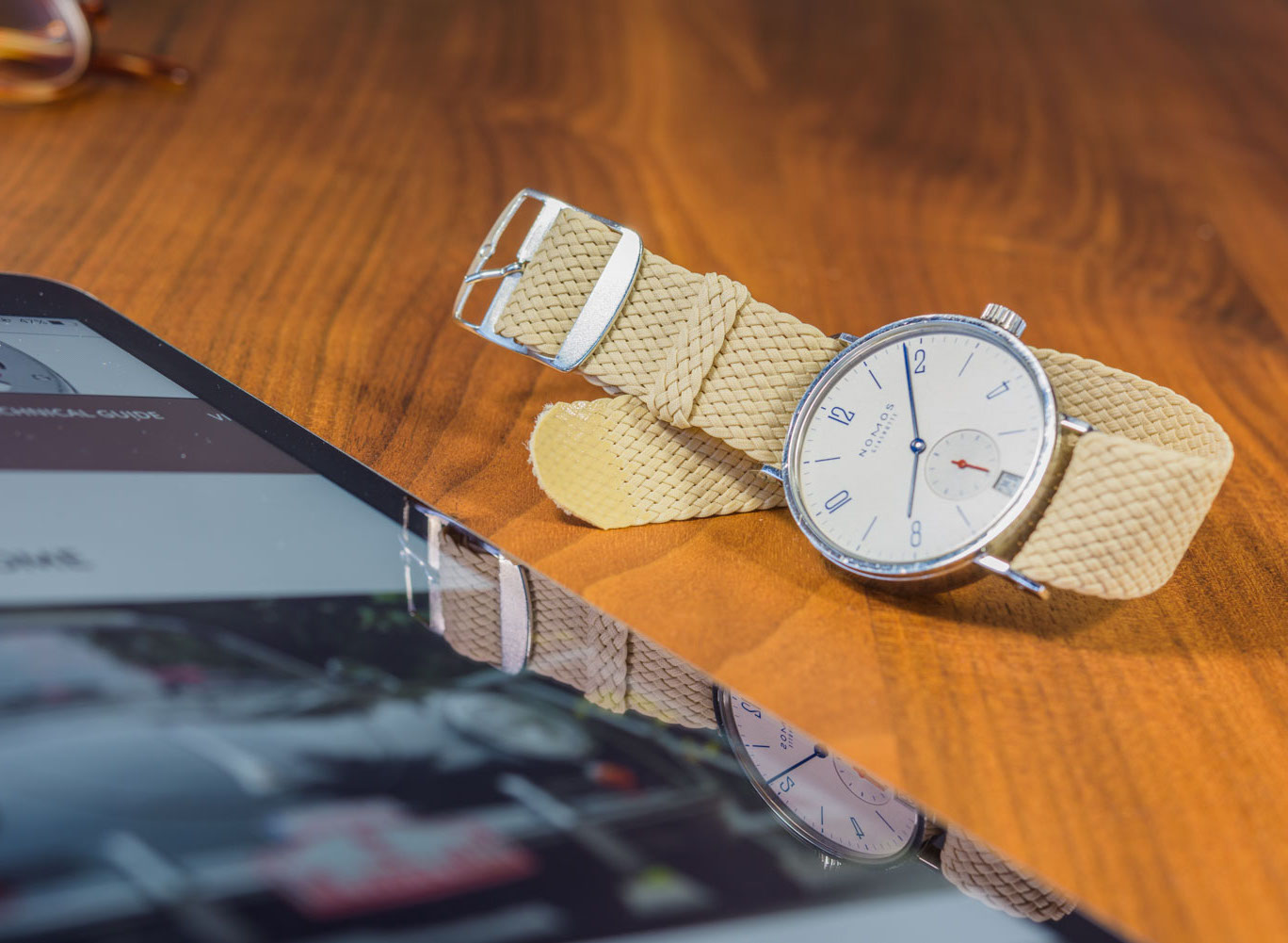 We recommend a Perlon strap for your vacation or weekend watch, for those moments where you don’t want anything more than relaxation on your mind and a good drink in your hand. And there are 9 colours available, so you should be able to find the desired one.