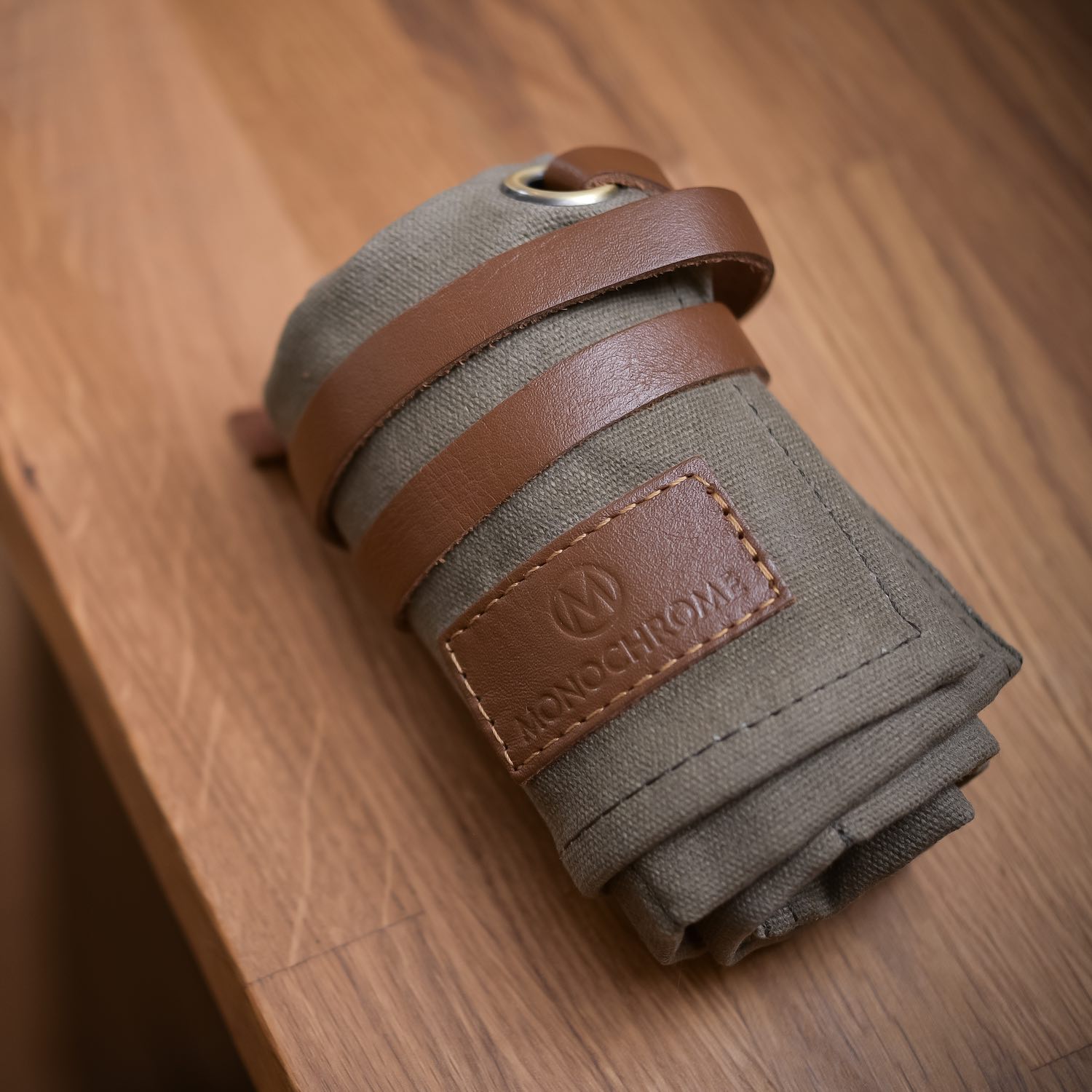 For more casual trips – or a more fly-under-the-radar approach – we’ve also added a canvas watch roll to the collection. Don’t be fooled by the price, this is a real luxury accessory. It is made of 12oz. waxed canvas, with beautiful leather detailing. And also some cool, slightly vintage colours!