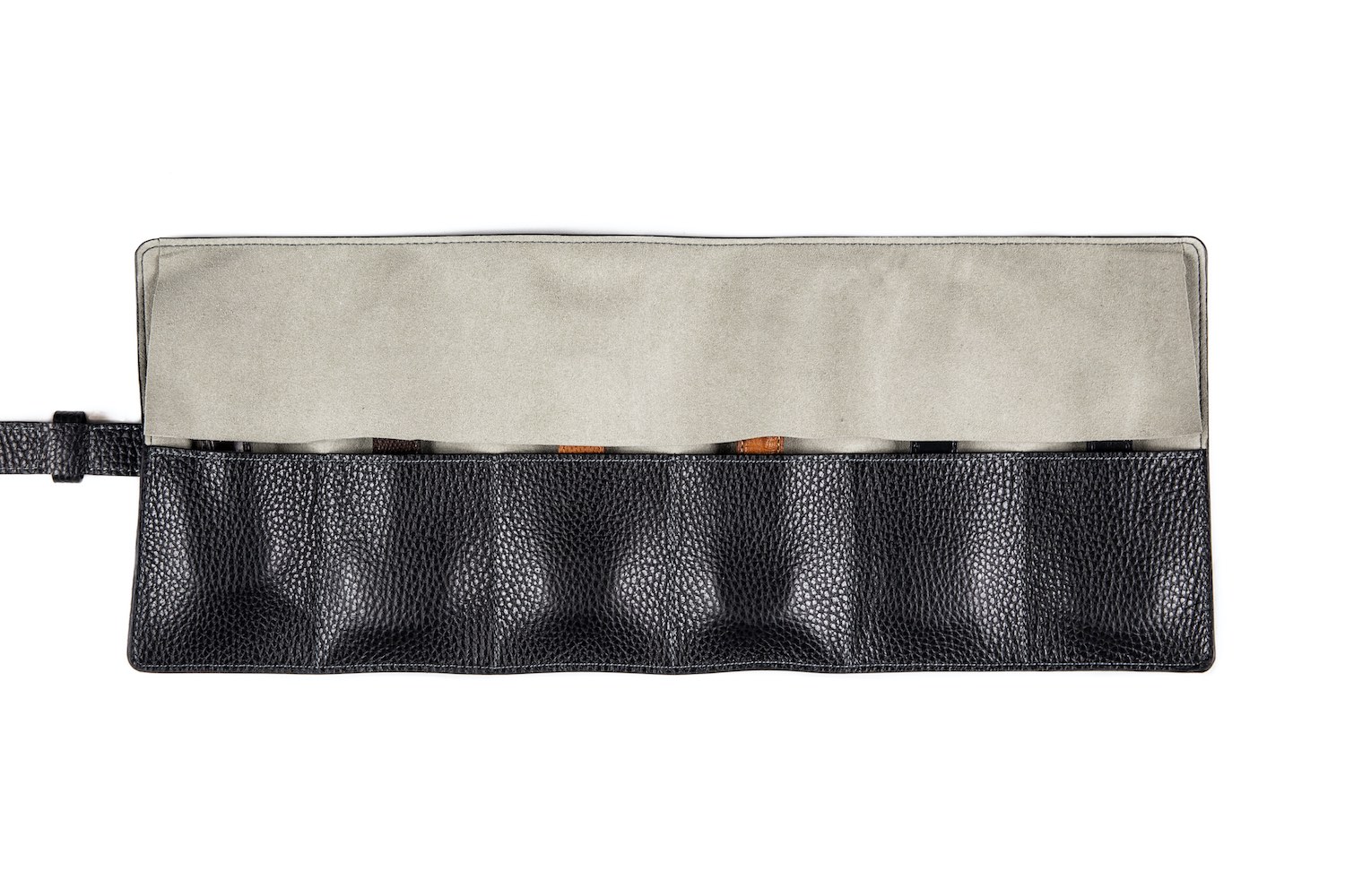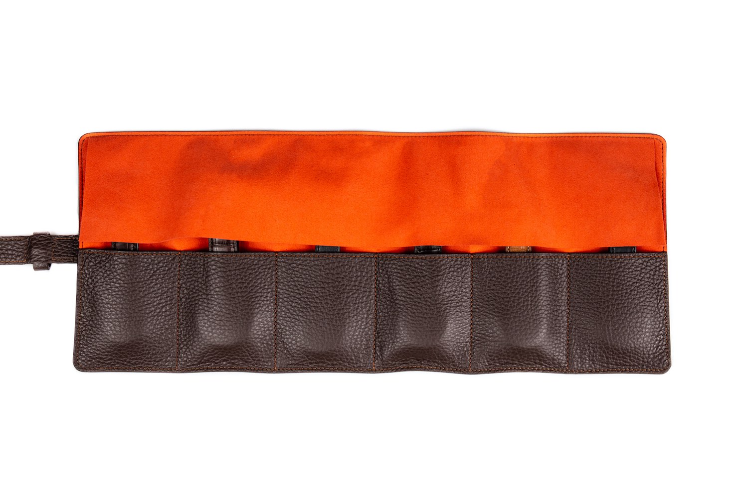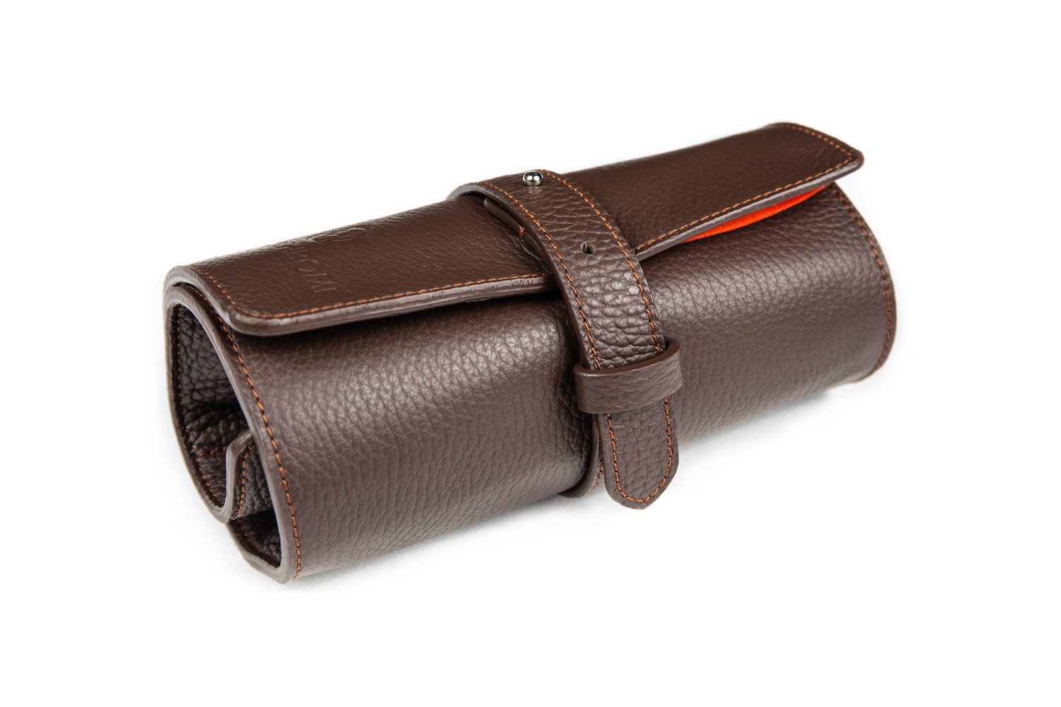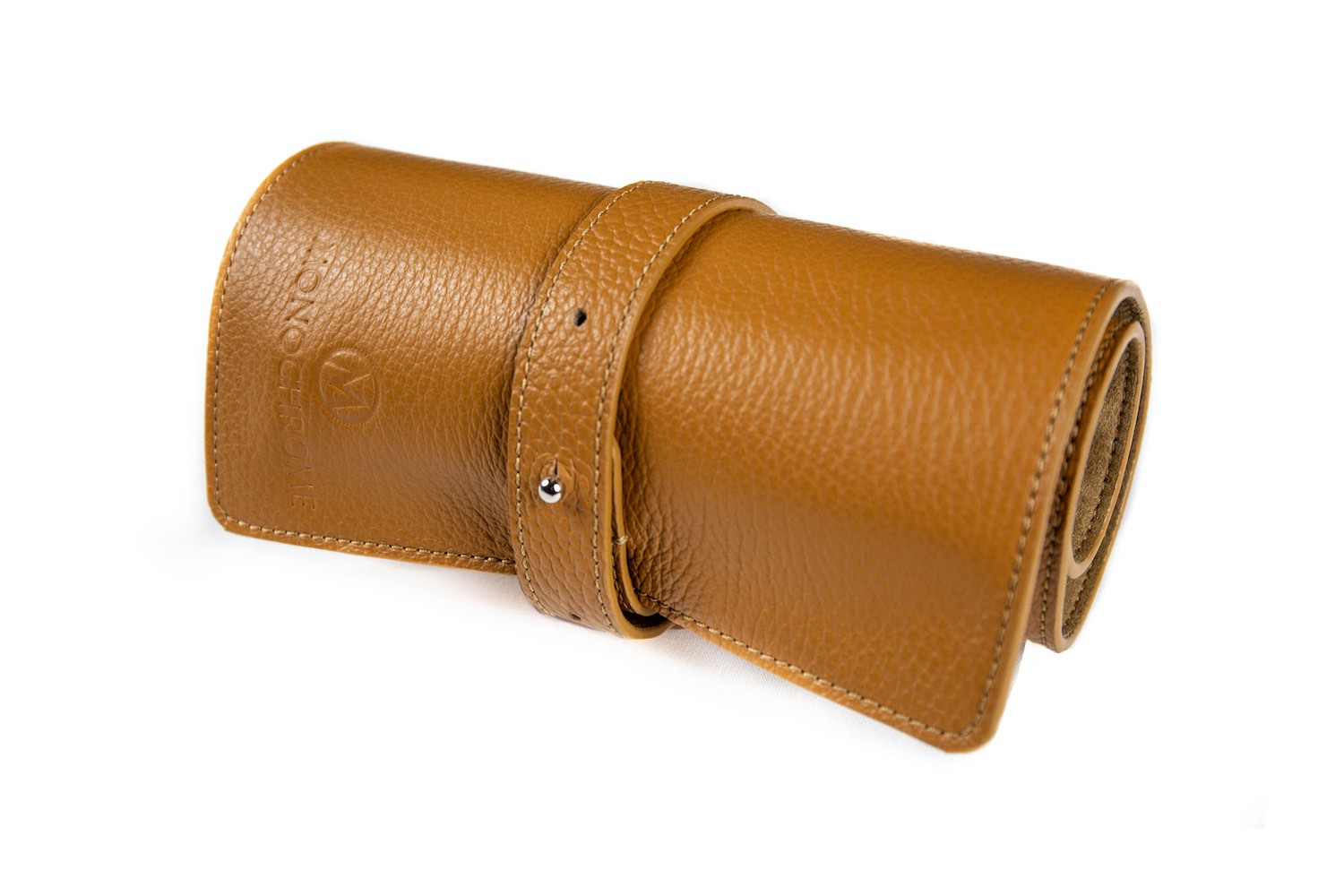 The MONOCHROME leather watch rolls are handmade and available in black & grey, dark brown & orange and brown & beige. Our leather watch rolls can safely protect up to six watches, lined with smooth microfibre keeping your watches both safe and clean. They really are the perfect companion for those moments when you actually are not wearing your watches or travelling.