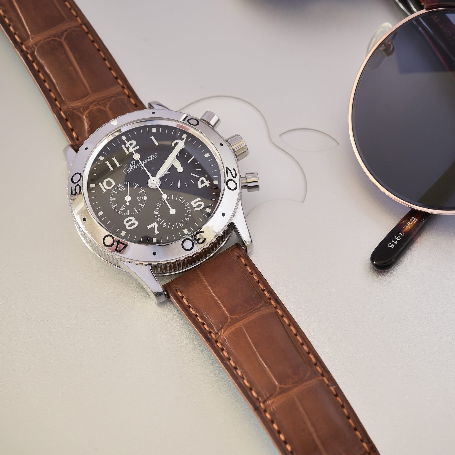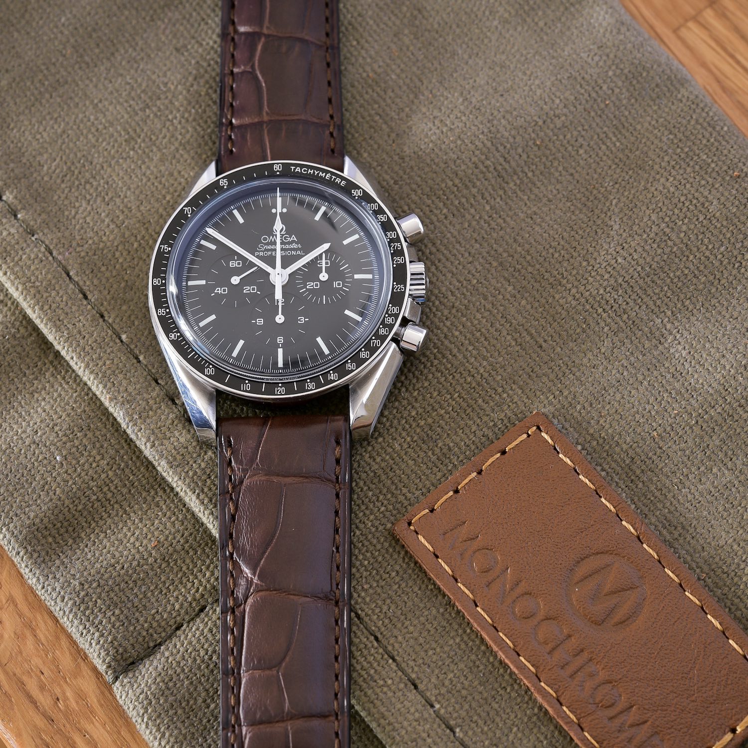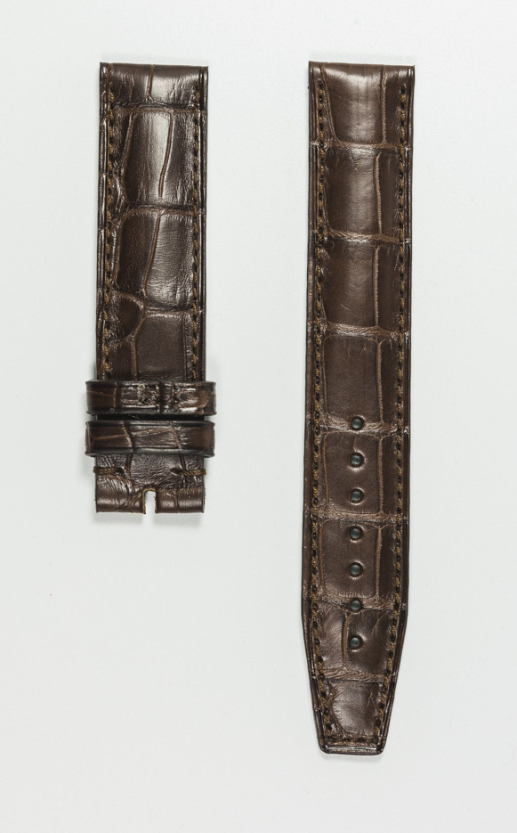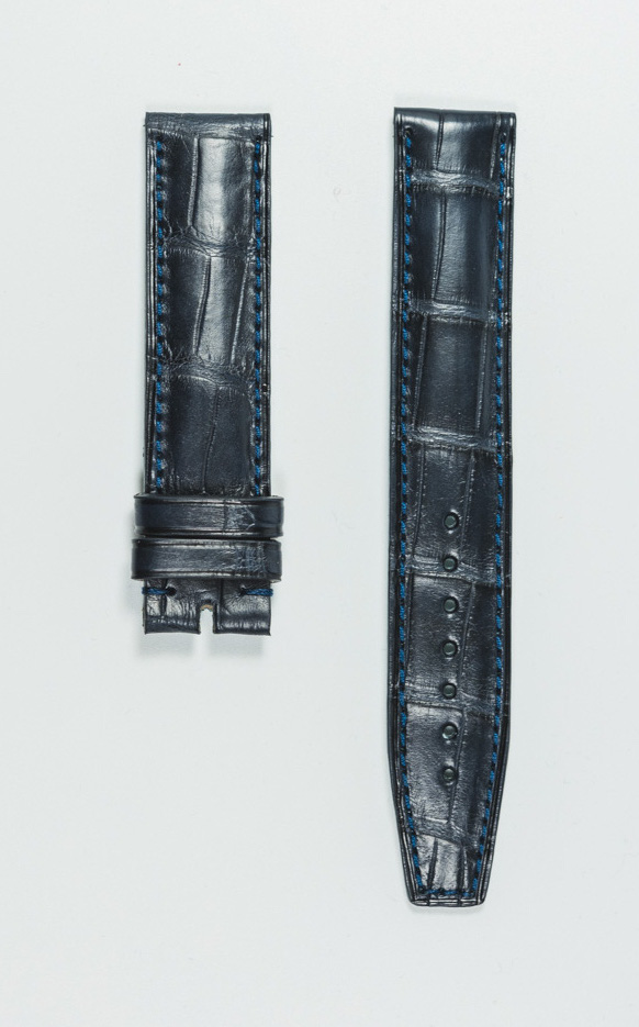 Our alligator leather straps are available in two different lengths, or at a small premium, custom sized. We have all the regular width sizes in stock as well. And a bunch of classic colours that will look good on both an IWC Portuguese, a JLC Reverso, a Speedmaster or even a nice little Lange.