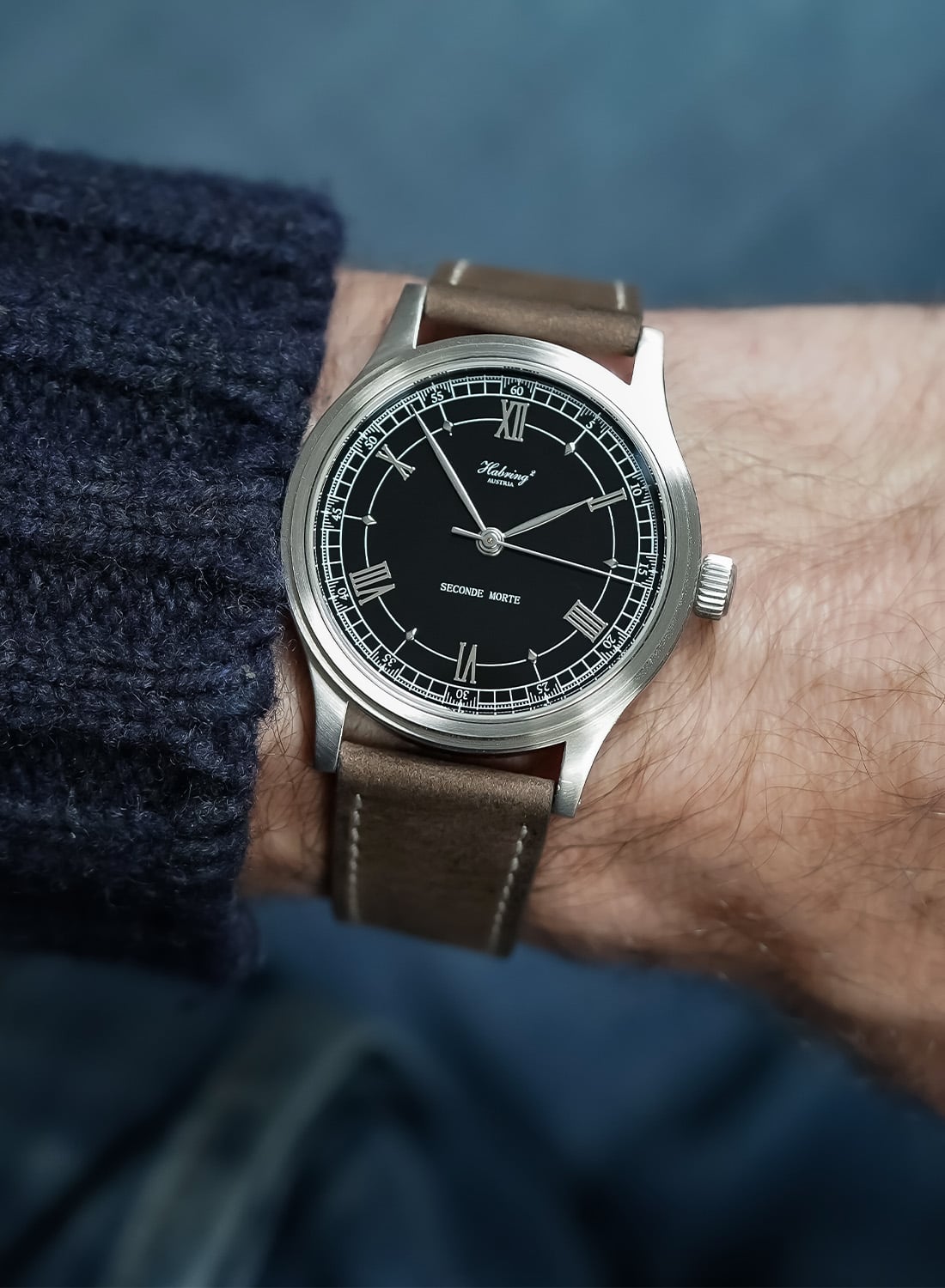 For our Montre de Souscription 4, named Seconde Morte to retain the French nomenclature, we’ve used the Habrings’ Erwin model as a base. This evolution of the time-only, hand-wound Felix model launched in 2014 is equipped with one of the Austrian brand’s most acclaimed complications, jumping seconds or deadbeat seconds.