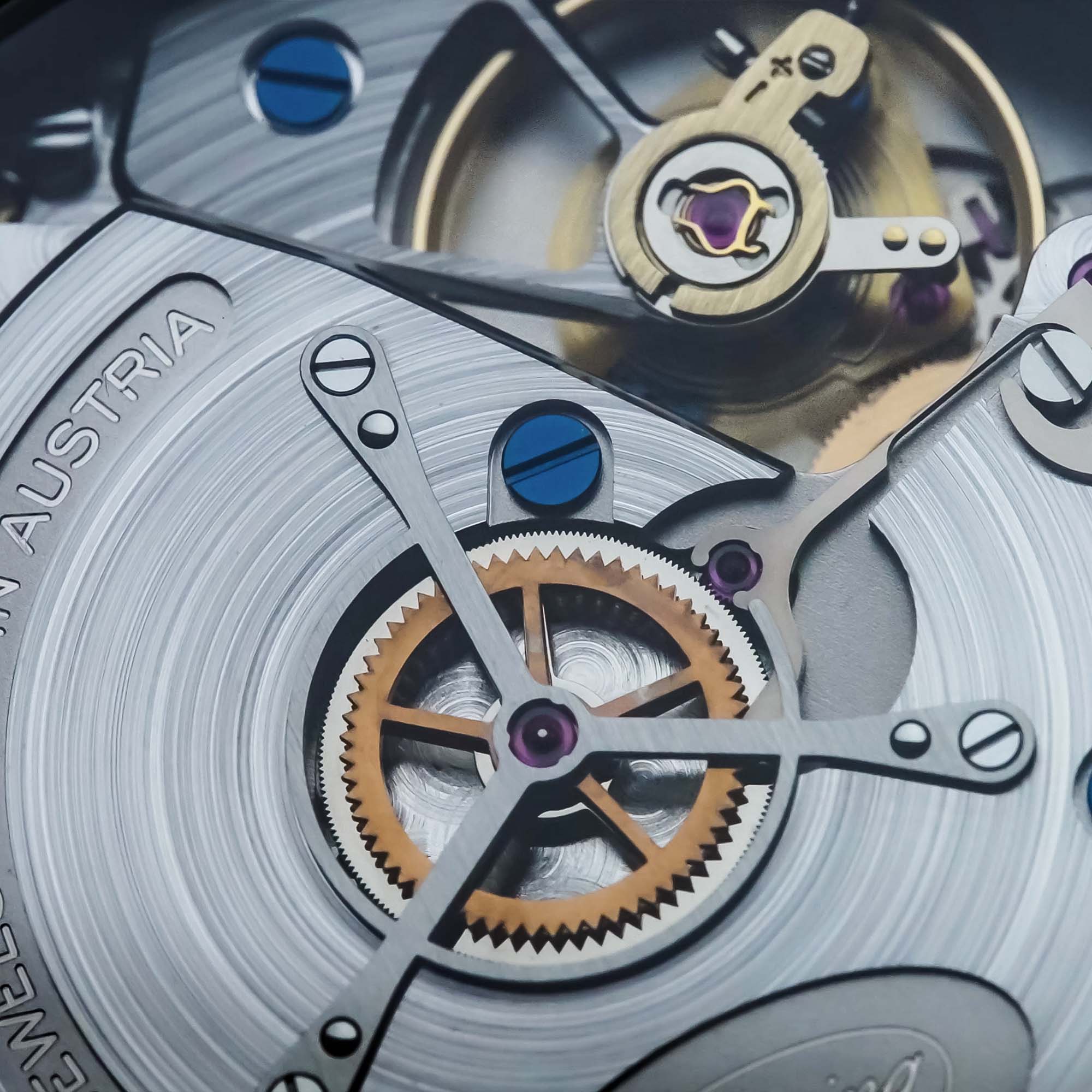 First of all, most components of the A11 are exclusive to Habring² and have nothing to do with ETA anymore. One of the reasons for creating the A11 was to become independent, so parts are either made in-house in Austria or sourced from nearby partners in Germany, Switzerland, and Austria. Notably, most key components are made in-house, including the escapement with its pallet fork and escape wheel, and the terminal curve of the hairsprings. The A11 was constructed to retain the qualities of the Valjoux while also being superior in many ways. It’s also built to be robust and easily repairable in the long run.