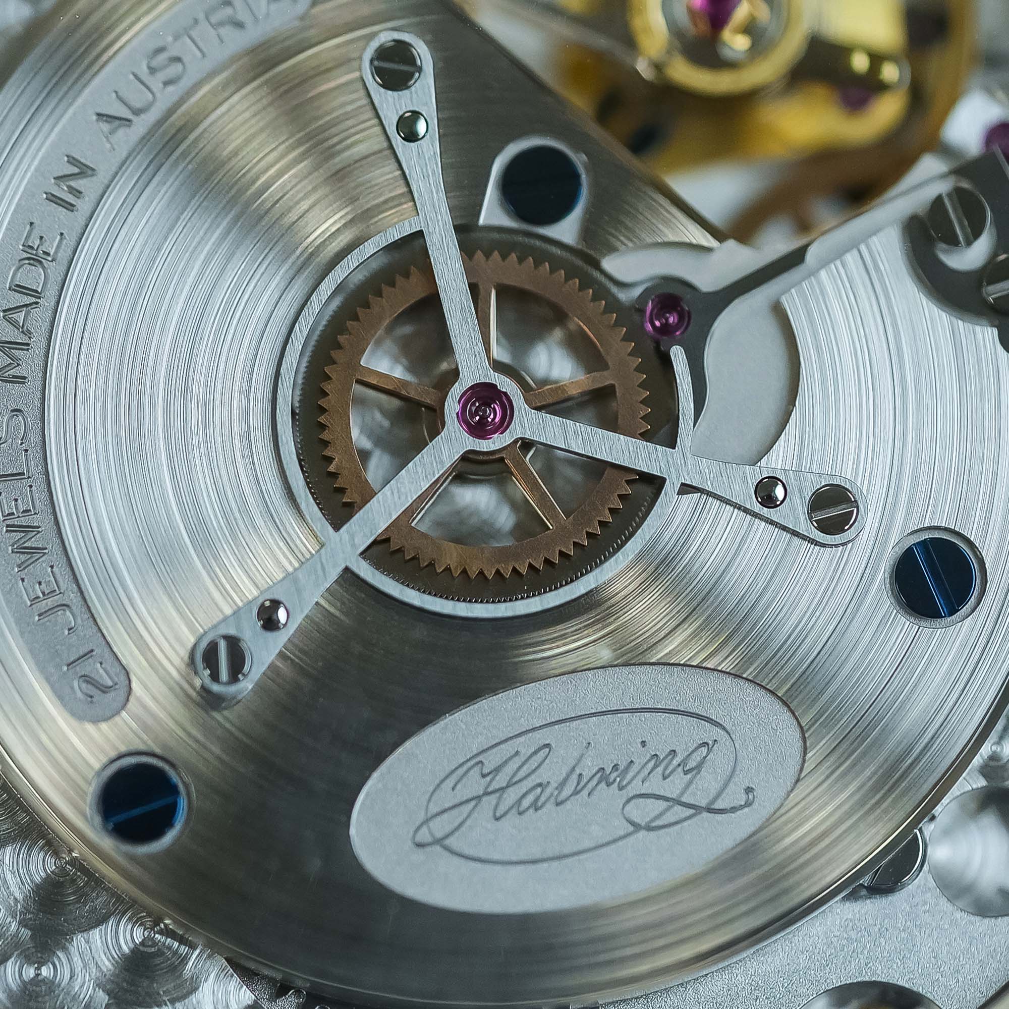First of all, most components of the A11 are exclusive to Habring² and have nothing to do with ETA anymore. One of the reasons for creating the A11 was to become independent, so parts are either made in-house in Austria or sourced from nearby partners in Germany, Switzerland, and Austria. Notably, most key components are made in-house, including the escapement with its pallet fork and escape wheel, and the terminal curve of the hairsprings. The A11 was constructed to retain the qualities of the Valjoux while also being superior in many ways. It’s also built to be robust and easily repairable in the long run.