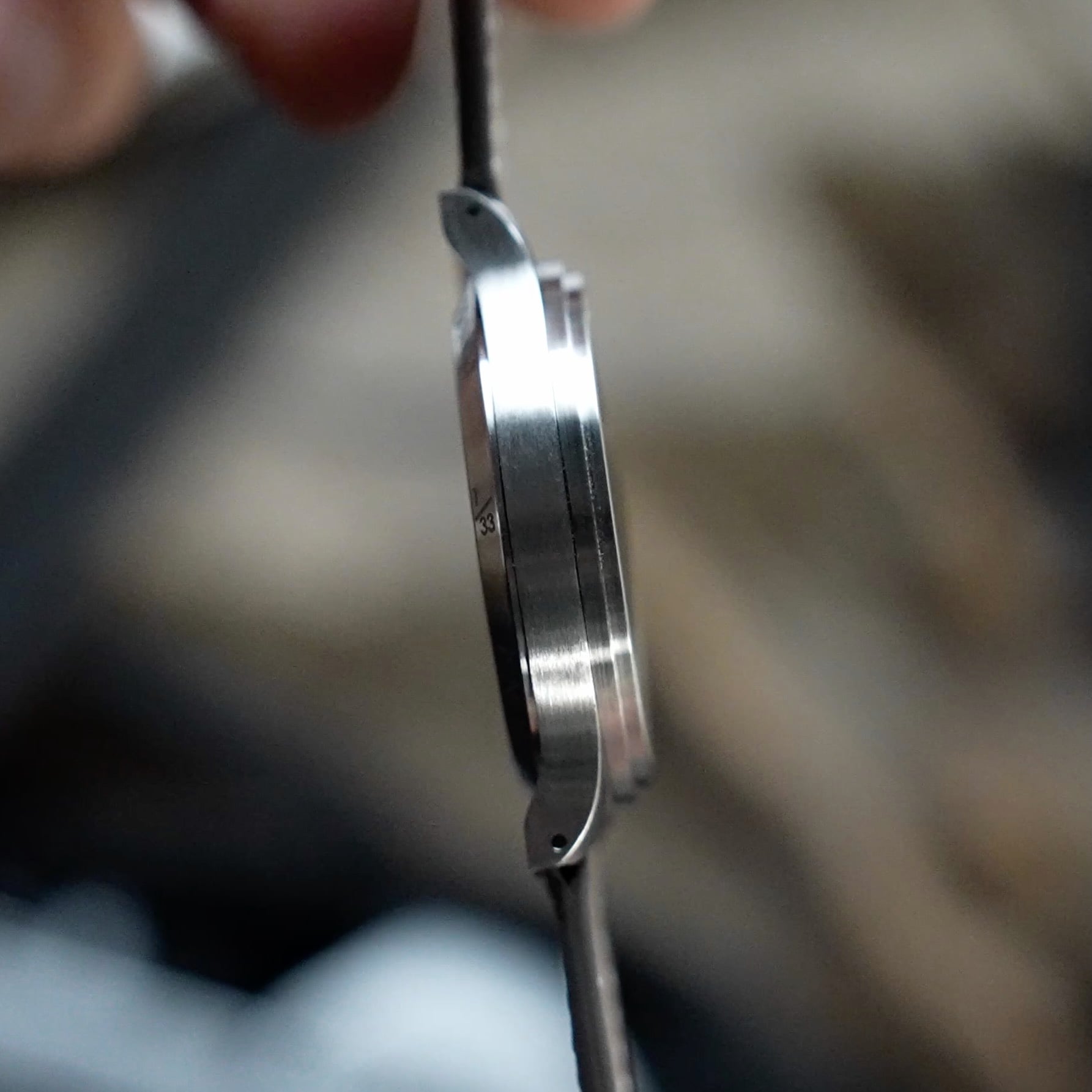 What is a seconde morte or jumping seconds? Why does the seconds hand on this watch jump once per second, instead of sweeping around the dial as it should on a mechanical watch? Rest assured, the MdS4 is not a quartz-powered watch. This wouldn’t be possible at MONOCHROME. Most mechanical watches, running at 3 or 4Hz, have a so-called sweeping seconds hand that performs between 6 and 8 pulses per second, giving the impression that the hand glides over the dial. A seconde morte or deadbeat seconds movement still runs at a traditional frequency (4Hz in the case of the MdS4) but displays its seconds in a jumping way, at one pulse per second.