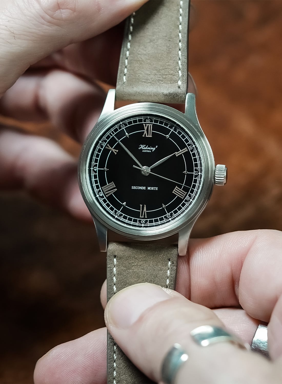 For our Montre de Souscription 4, named Seconde Morte to retain the French nomenclature, we’ve used the Habrings’ Erwin model as a base. This evolution of the time-only, hand-wound Felix model launched in 2014 is equipped with one of the Austrian brand’s most acclaimed complications, jumping seconds or deadbeat seconds.
