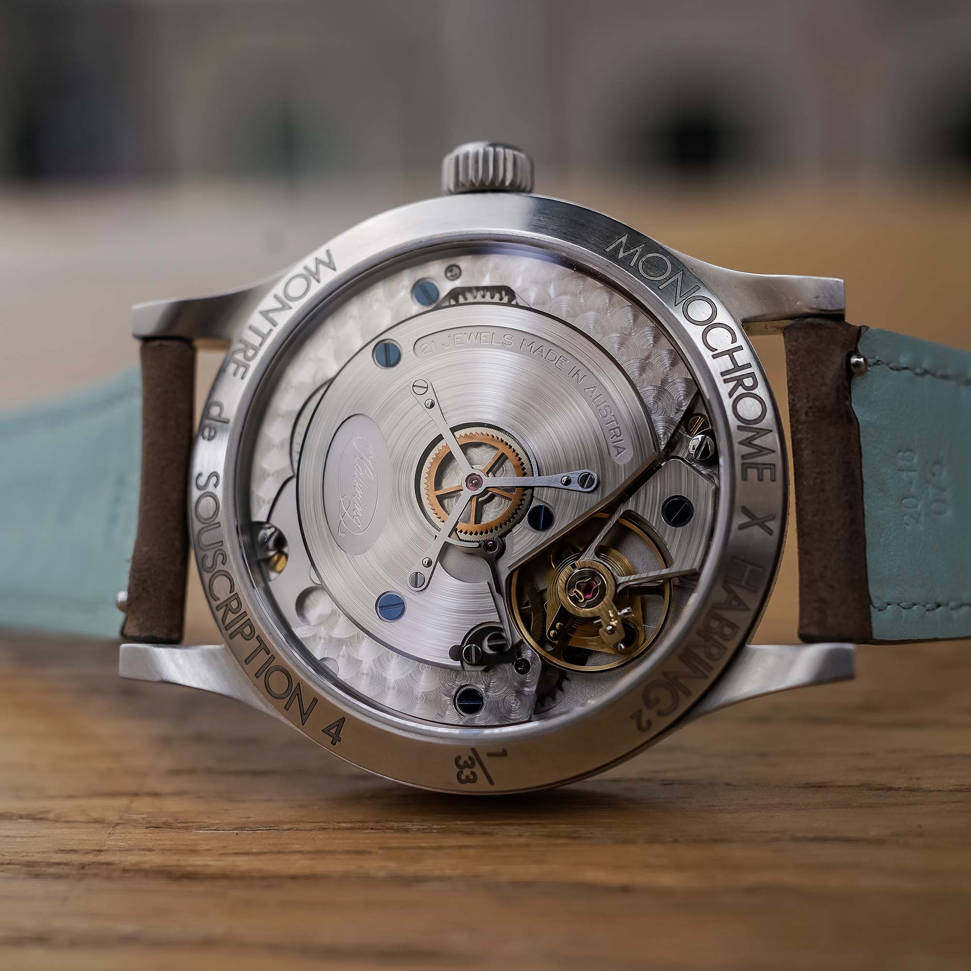 Available at the MONOCHROME Shop, the Montre de Souscription 4 Seconde Morte watch is priced at EUR 6,000 excluding taxes, and includes free insured international shipping and a 3-year warranty by Habring². When ordering the watch, we will ask for a non-refundable deposit of EUR 2,000 (excl. taxes). The remaining amount will be charged when the watch is ready to be shipped.