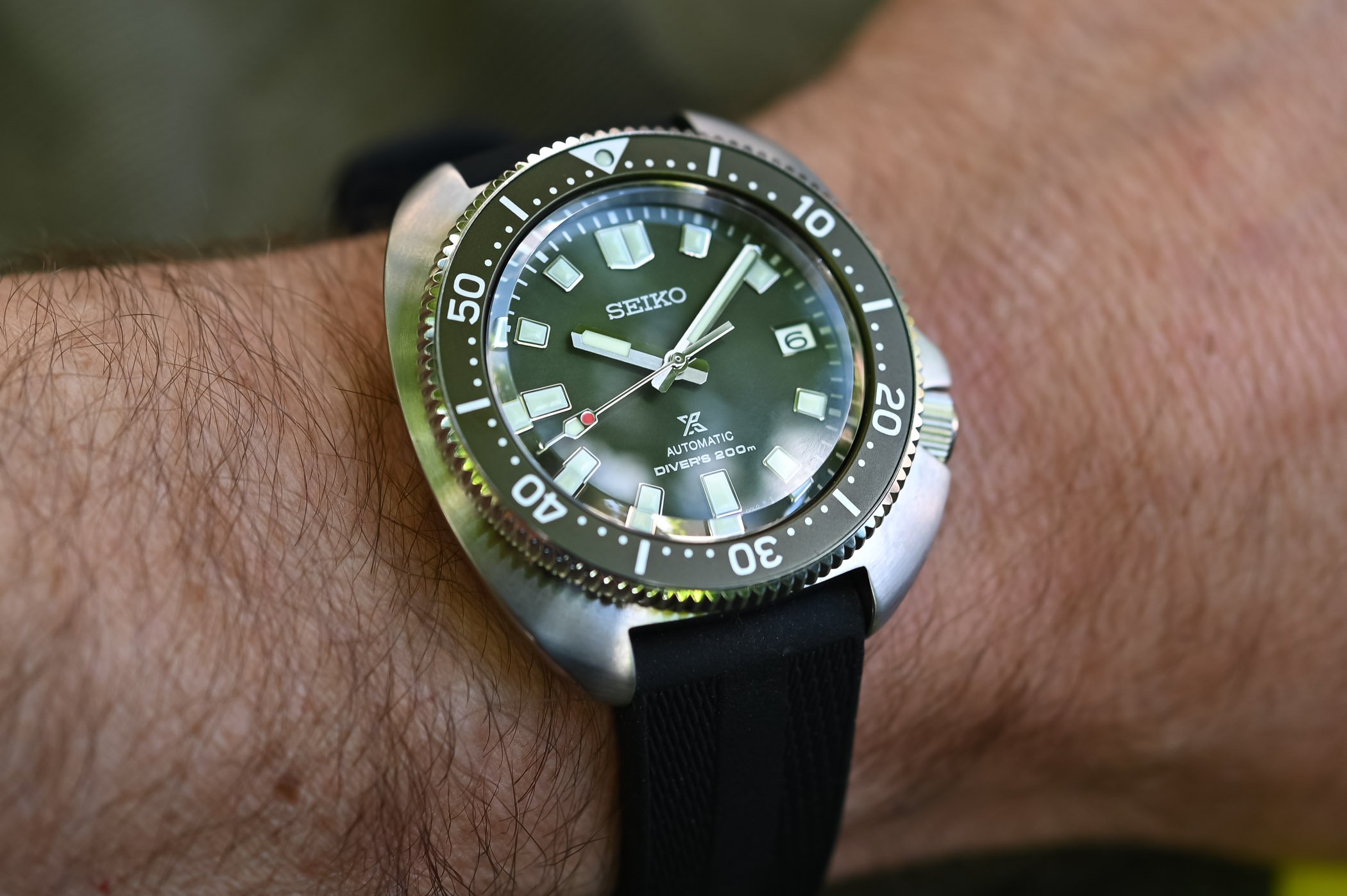 Quick facts: 42.8mm diameter – stainless steel case – sapphire crystal – unidirectional bezel with green aluminium insert – 200m water-resistant – calibre 6R35, in-house – automatic with date – black silicon strap – EUR 1,150 – www.seikowatches.com