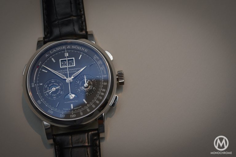 …and it also features an instantaneous (!!) perpetual calendar. What I like very much about it, is how they integrated the perpetual calendar in the rim of the dial. This way it doesn’t clutter the dial, that unhindered shows the time, a day/night indication, day of the week, date and moon phase.