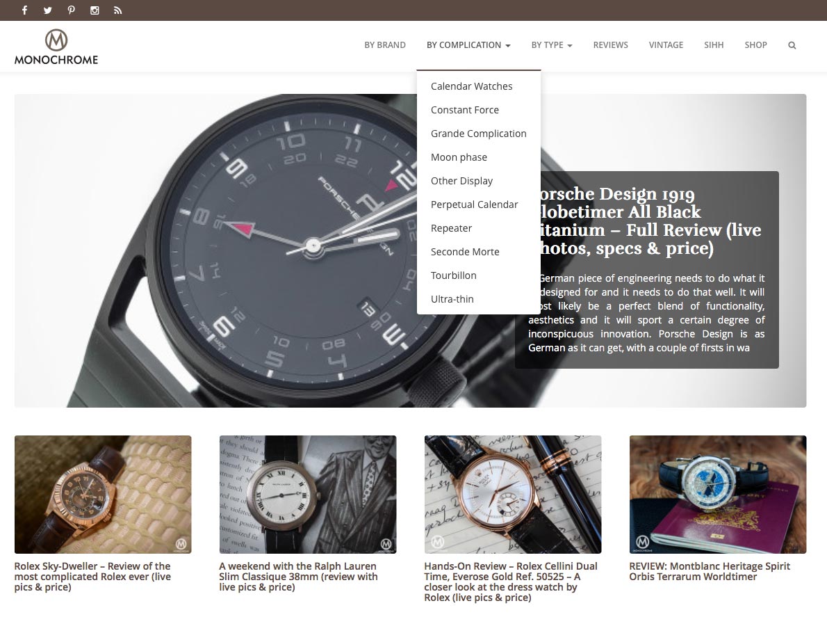 Touching upon that topic, designing and building our new platform has been quite a work. Initially launched right before Baselworld, it was not the most stable and fast solution, so we started again, with a new web designer, and he did a great job. Now Monochrome meets the targets that I planned, meaning it’s a very fast website for you to browse, it has convenient menus serving you all the information you’re looking for, and it can be read from any device. I hope you enjoy having fast acces to our articles about watches with constant force mechanisms, watches with a tourbillon, or my personal favourite, watches with a different display of time.
