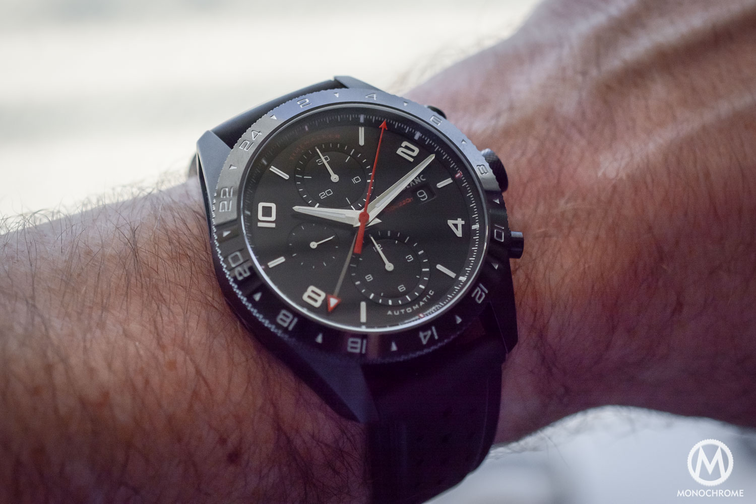 The Montblanc TimeWalker Chronograph UTC features the MB25.03 movement, which is based on an ETA 7754. The watch has 46 hours of power reserve, is water resistant to 100 meters, and just as any watch coming out of the Villeret facility of Montblanc, will have undergone the Montblanc Laboratory Test 500 before being delivered to the final customer. It comes on either a black leather or black rubber perforated straps to mimic the design of (vintage) racing gloves, finished with a folding clasp.