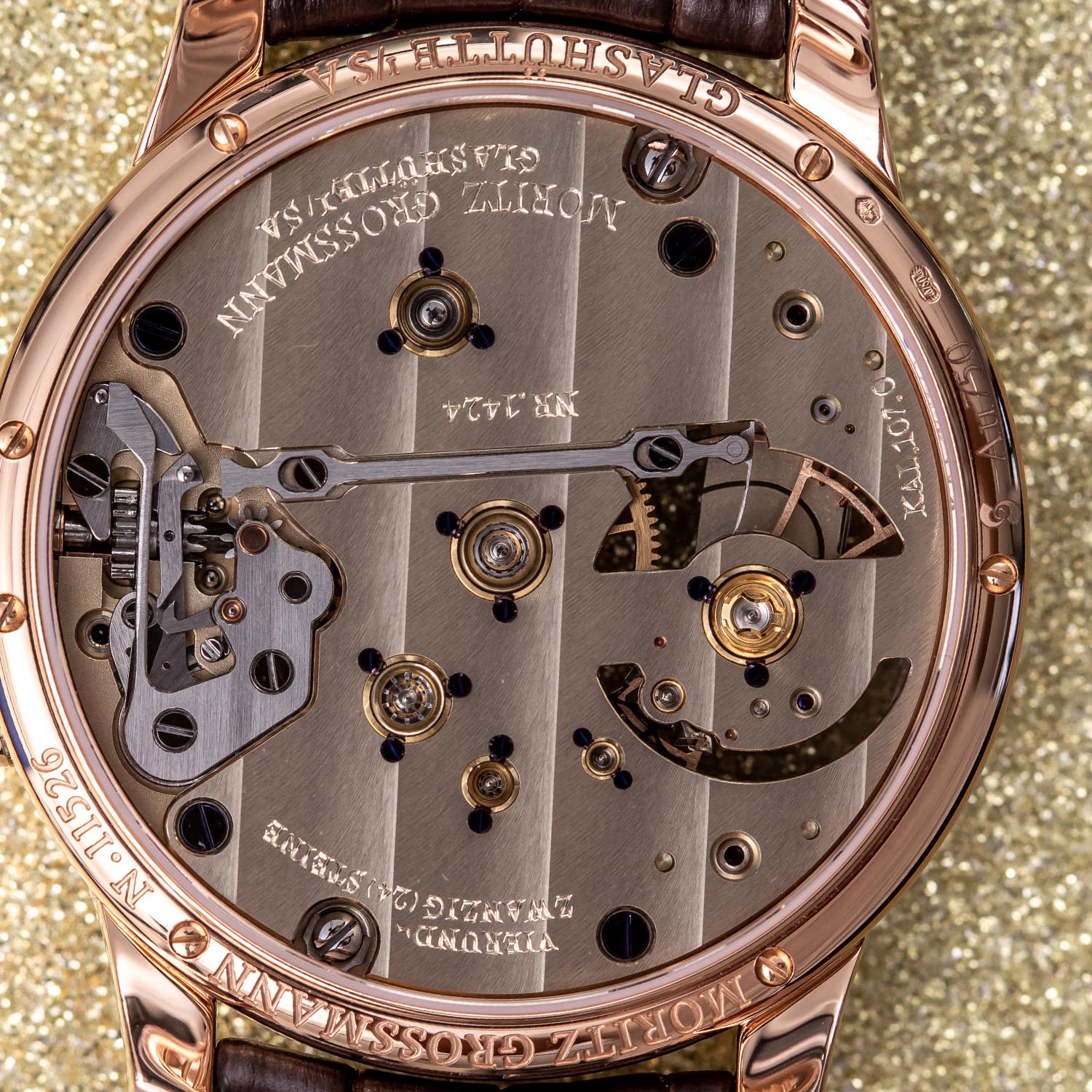 While most of its watches offer a very restrained look, at least on the habillage, the movement side is Haute Horlogerie through and through. The brand is a true manufacture, developing and producing as much as it can in-house, by hand. The manufacture doesn’t cut corners and isn’t shy of doing things outside of the box. This is portrayed by the Moritz Grossmann Hamatic, the brand’s first automatic movement featuring a unique pendulum-style automatic winding system. This is based on traditional hammer-winding mechanisms, predating central, peripheral, or micro-rotors. The functionality of the movement was originally best-suited for pocket watches, which were worn in a mostly static fashion as we explained in-depth about a year ago.