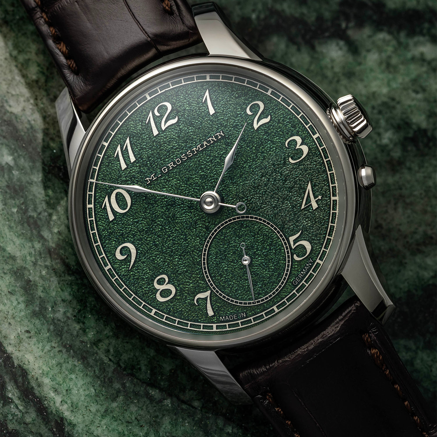 One of the few, if not only, women to lead an independent watch brand, Christine Hutter has steered Moritiz Grossmann down the path of refined watchmaking with low production numbers, in-house calibres, and a dedication to Schönstes deutsches Handwerk – the most beautiful German craftsmanship. First unveiled in 2021, the Tremblage model from the Benu collection is a stellar example of German craftsmanship and returns this summer with a refreshing green dial and a fascinating granulated texture.