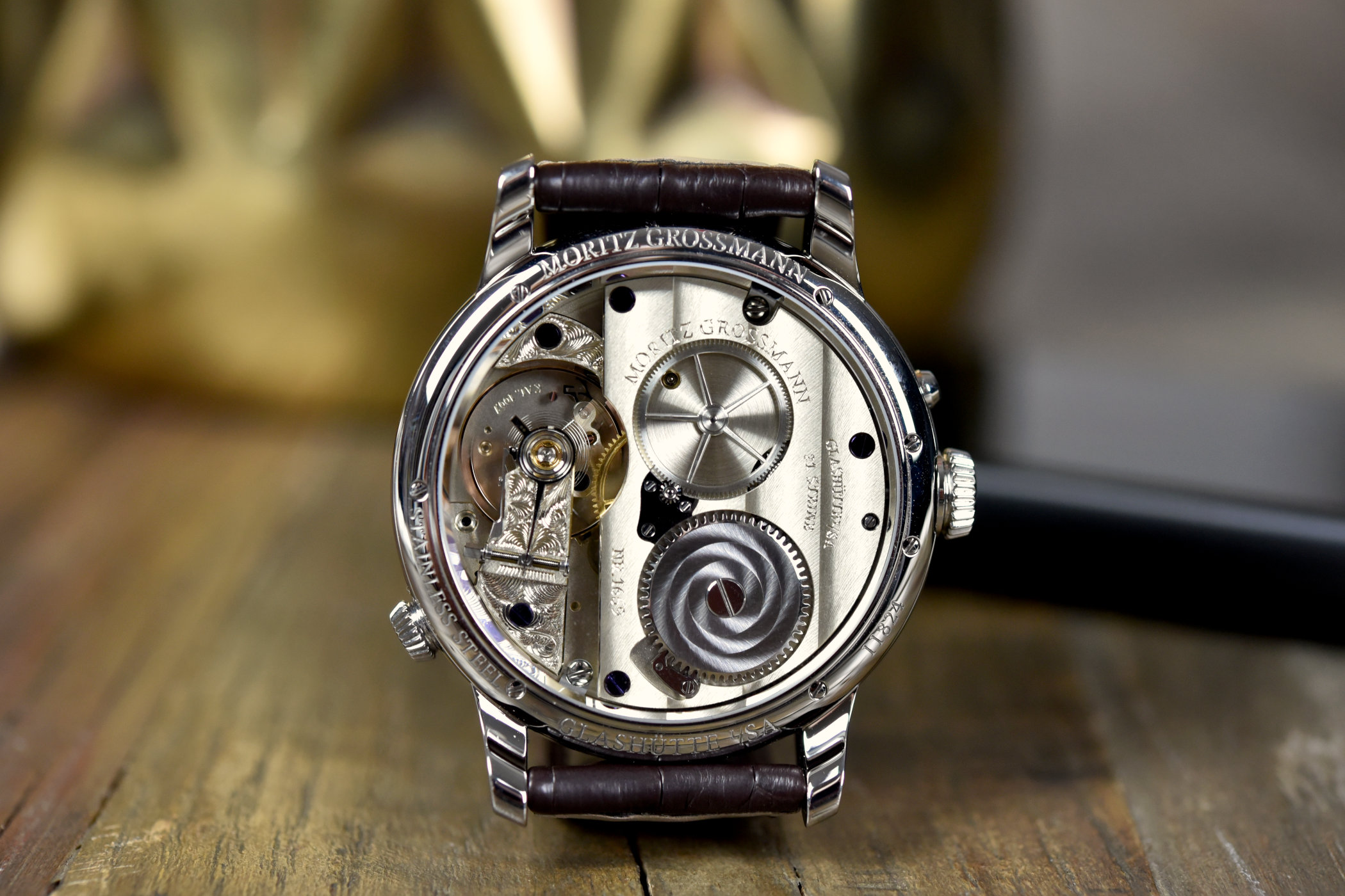 The caseback reveals the superb in-house Calibre 100.7, a hand-wound movement finished with great care. But more than words, we invite you to take a look at the video on top of this article, as it not only gives some details on the functionalities of the Moritz Grossmann Universalzeit but also will provide a deeper look at every single detail of this watch.
