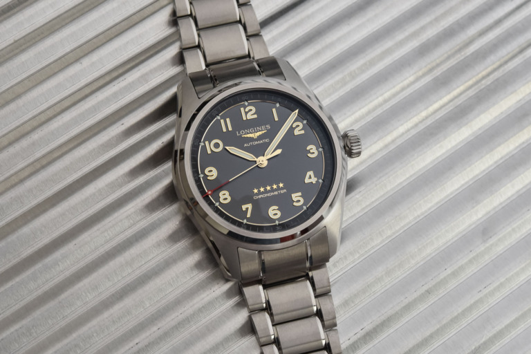 Developed exclusively for Longines by ETA – Swatch’s movement production company – the calibre L891.5 is automatic and equipped with several interesting technologies. First, thanks to a revised kinetic chain and a reduced frequency (3.5Hz), it now has 72 hours of power reserve – meaning that you can leave it on your desk on Friday evening, and it’ll still be beating on Monday morning. Second, it is fitted with an anti-magnetic silicon balance spring, which contributes to Longines’ offering a 5-year warranty.