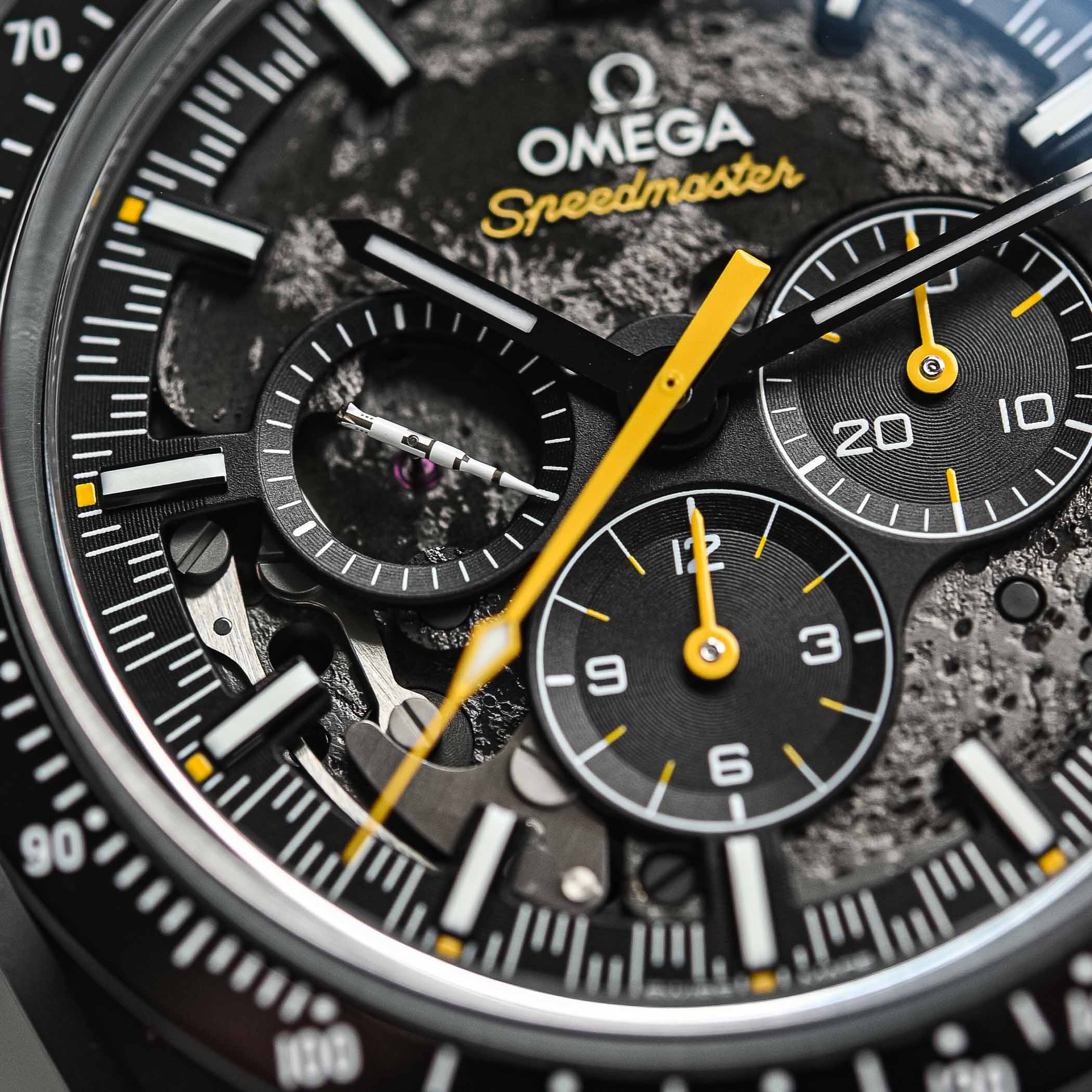 Last Tuesday (of course), Omega presented its latest Speedmaster model, the Speedmaster Dark Side of the Moon Apollo 8. As an updated version of an existing model, the watch felt highly familiar at first sight. Presented in 2018 to celebrate the 50th anniversary of the mission that first observed the other side of our satellite (and also the first human spaceflight to reach the Moon…), this DSOTM Apollo 8 was characterized by its lunar texture on both sides and its bold black and yellow colour scheme. With the new model, it seems that not much has changed, apart from a seconds hand shaped like Saturn V and an updated movement. But is it really that simple? Let’s dive into the details.