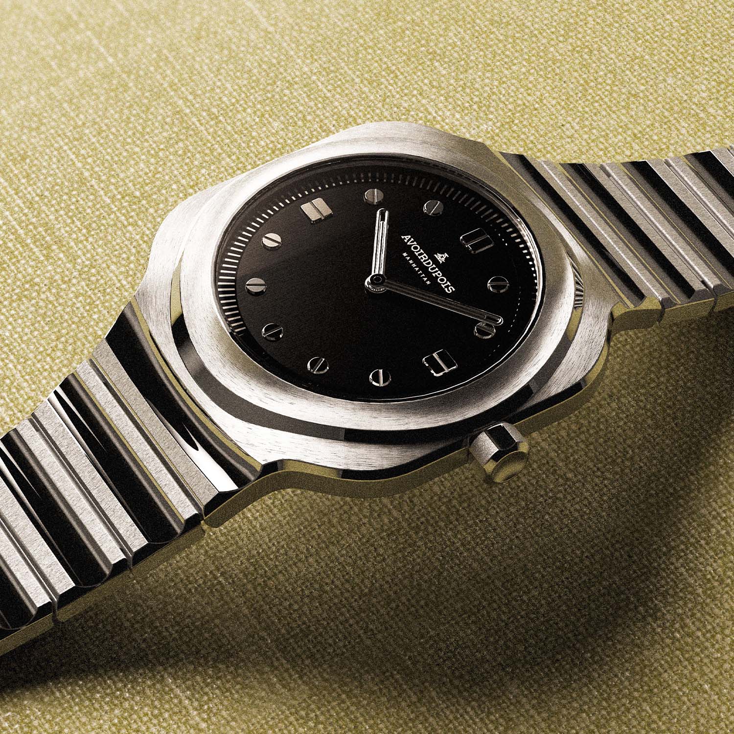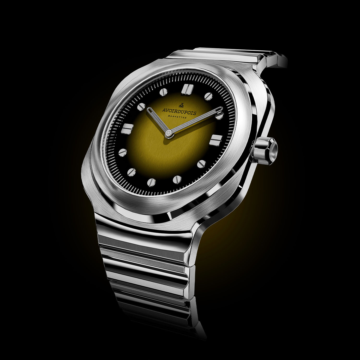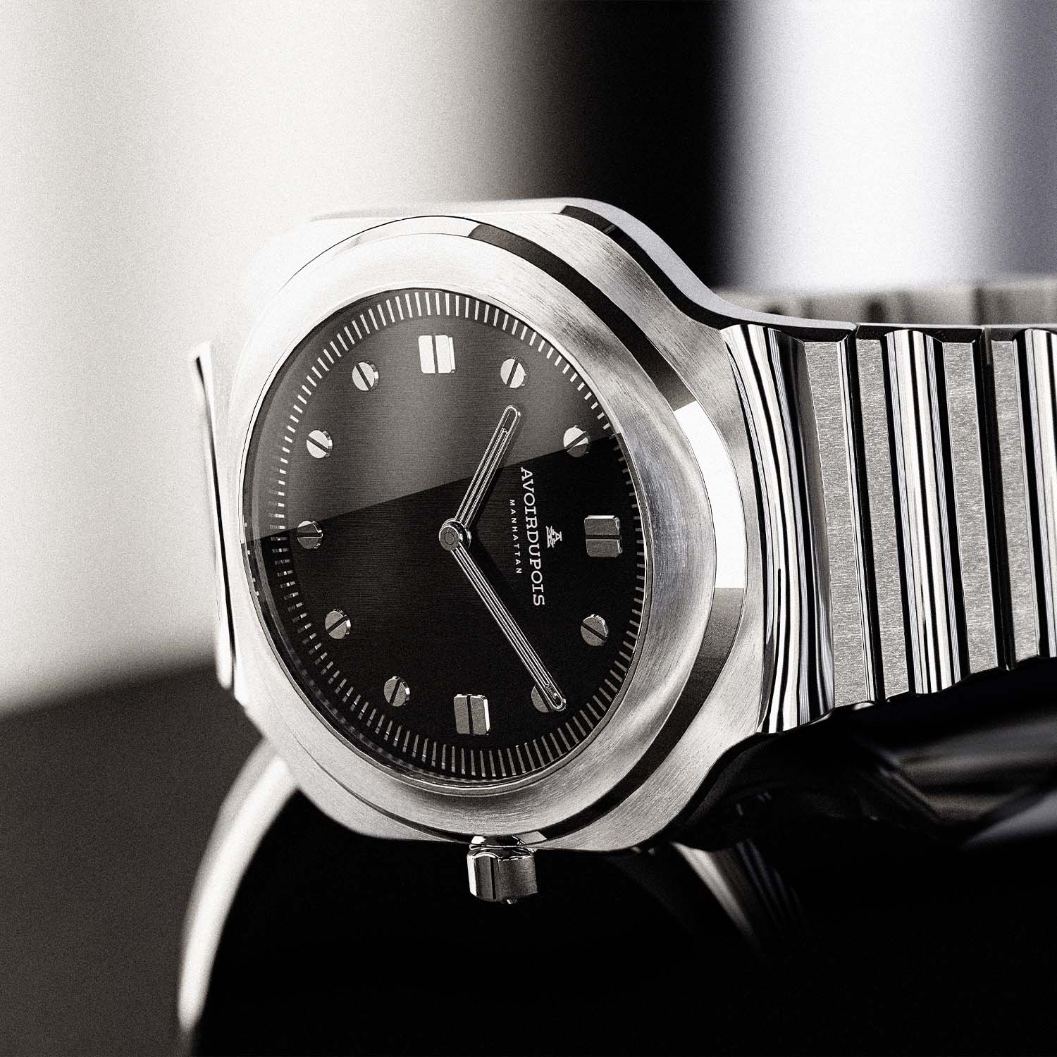 We have exciting news from the United States, and it has nothing to do with the Trump Administration’s Swiss watch import tariffs or their recent reduction. Avoirdupois, a New York City-based brand founded in 2017 by designer/engineer James Stumpf, has expanded its product mix beyond retro-styled furniture and lighting products to include watches. Designed and manufactured in the brand’s vertically integrated downtown manufactory, all the way down to the hairspring, the new Avoirdupois Force Majeure surprises on all fronts. Characterised by a pragmatic monobloc steel case construction, an ingenious deployant clasp on the integrated bracelet, industrial design vibes, and a micro-rotor calibre, the 100% Made-in-Manhattan Force Majeure marks a new chapter in mechanical design for Avoirdupois.