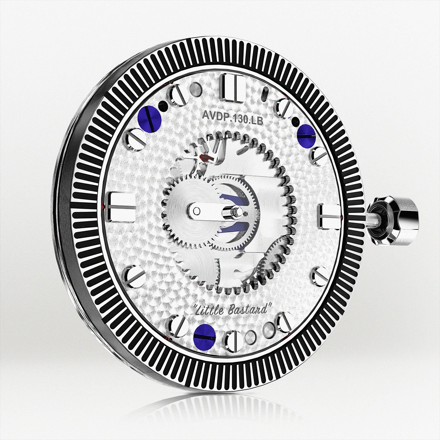 Proudly manufactured in-house in Manhattan, Avoirdepois explains its independent, self-sufficient American attitude regarding the movement. “When certain traditional components were found to be monopolized by foreign entities, we chose instead to reinvent the components themselves!” Developed entirely in the brand’s Manhattan manufactory, the automatic micro-rotor calibre AVDP.130.LB has an unusual frequency of 2.4Hz and stores a solid 60-hour power reserve. As a pragmatic American-made movement, it has just 47 components (excluding its 39 jewels) and is pending approval of 10 patents filed for its innovative “construction, simplicity, durability and manufacturability.” The 22k gold microrotor is decorated with a series of concentric grooves.