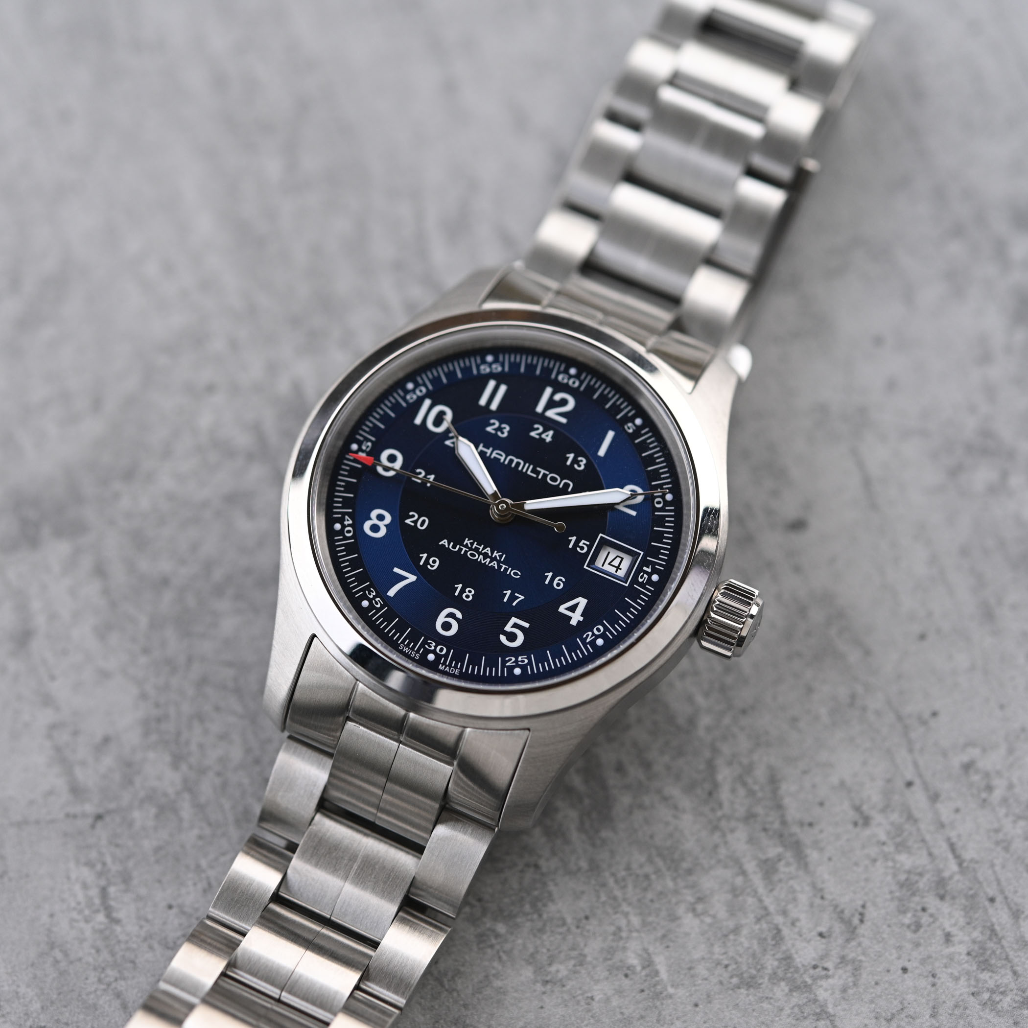 Attractive blue and green dial colours and two case sizes expand the popular Khaki Field collection.