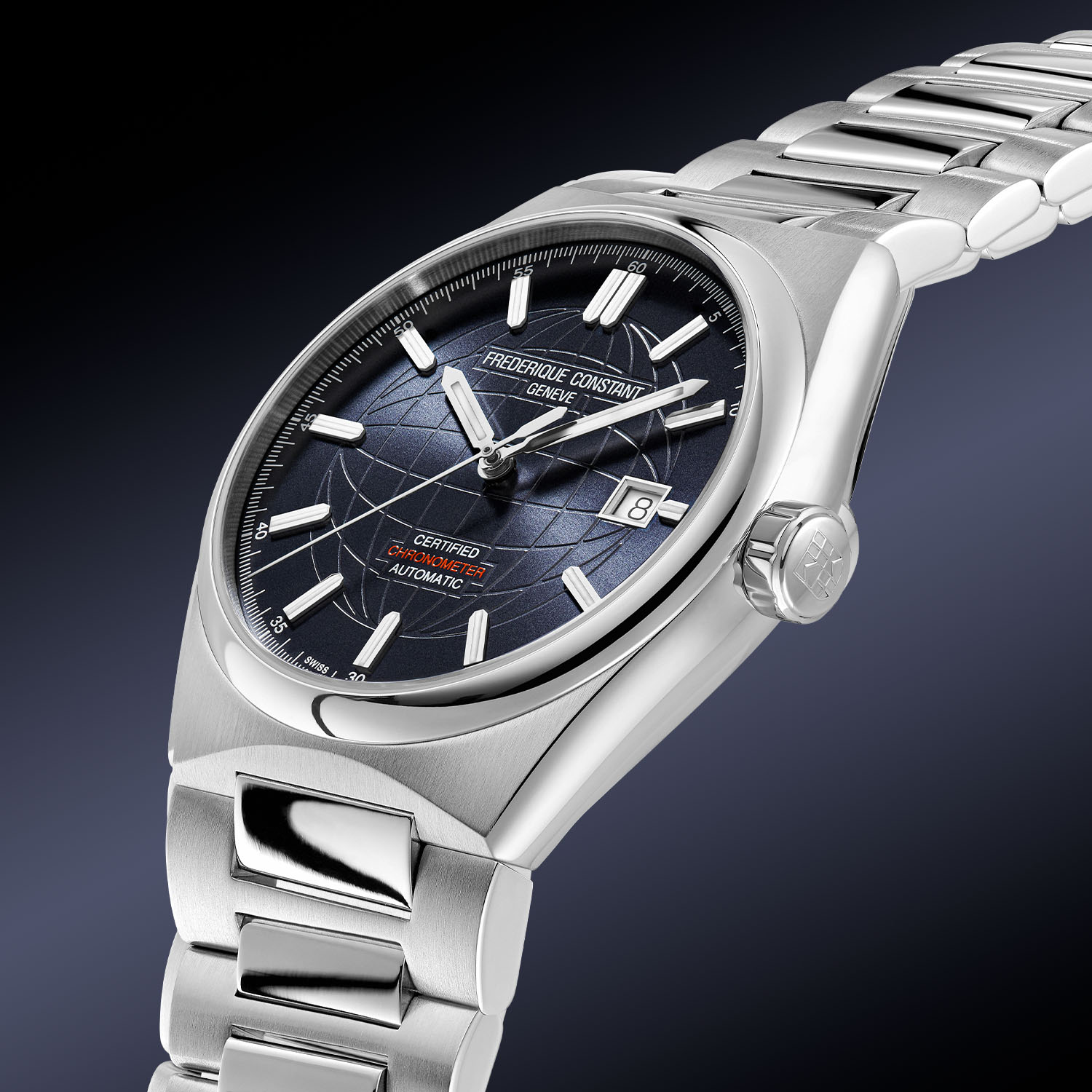 It’s pretty surprising when you think that the Highlife collection, Frederique Constant’s take on the luxury sports watch, has been around for fewer than three years. Thanks to its well-designed and finished case, its integrated and interchangeable bracelet, its clean dial, its well-represented range of complications, its affordable price tag, and the fact that it isn’t a flagrant copycat, the Highlife has secured itself a firm foothold on the market in record time. Two new dial colours – dark blue and dark green – join the Highlife Automatic COSC family, a straightforward time-and-date model in a 39mm case.