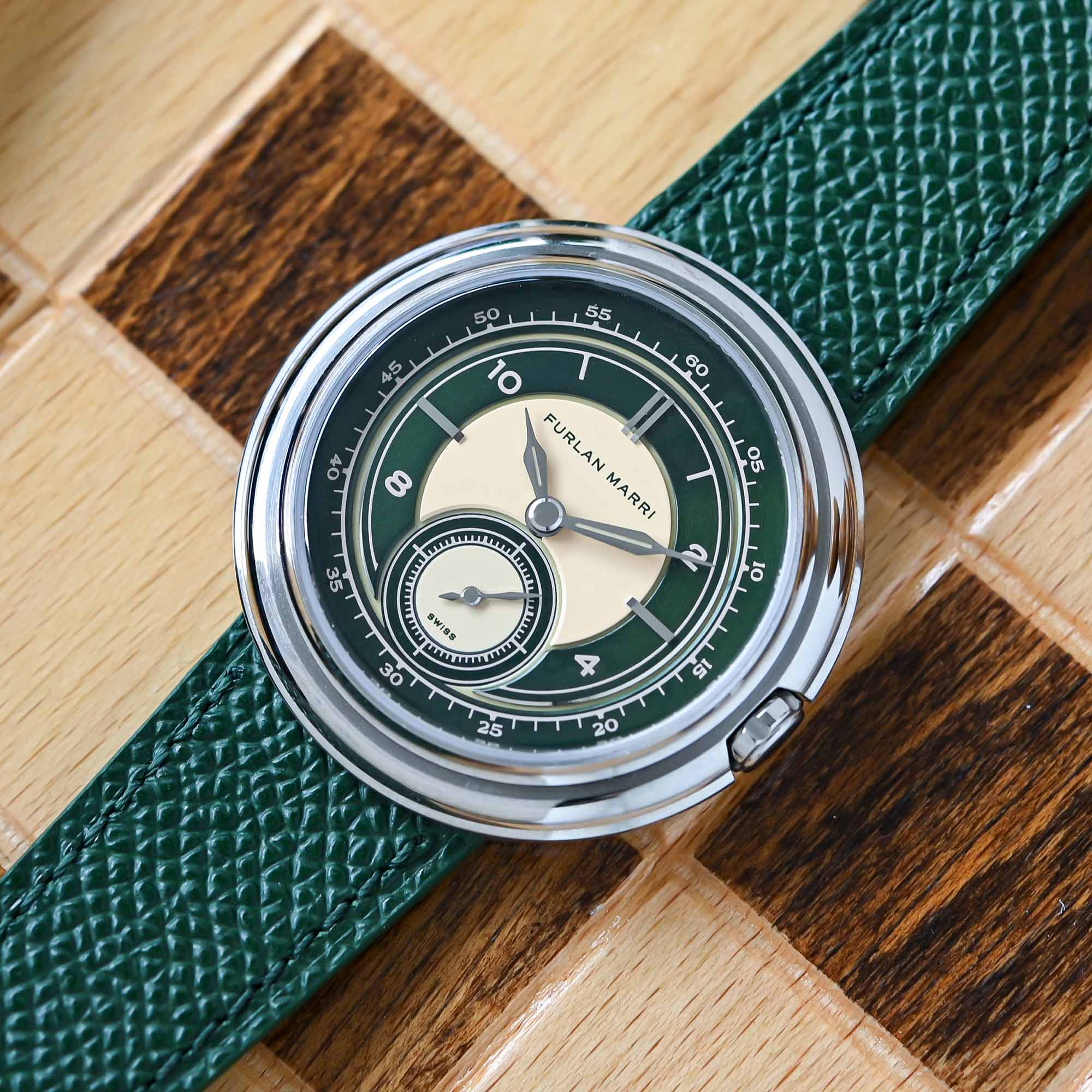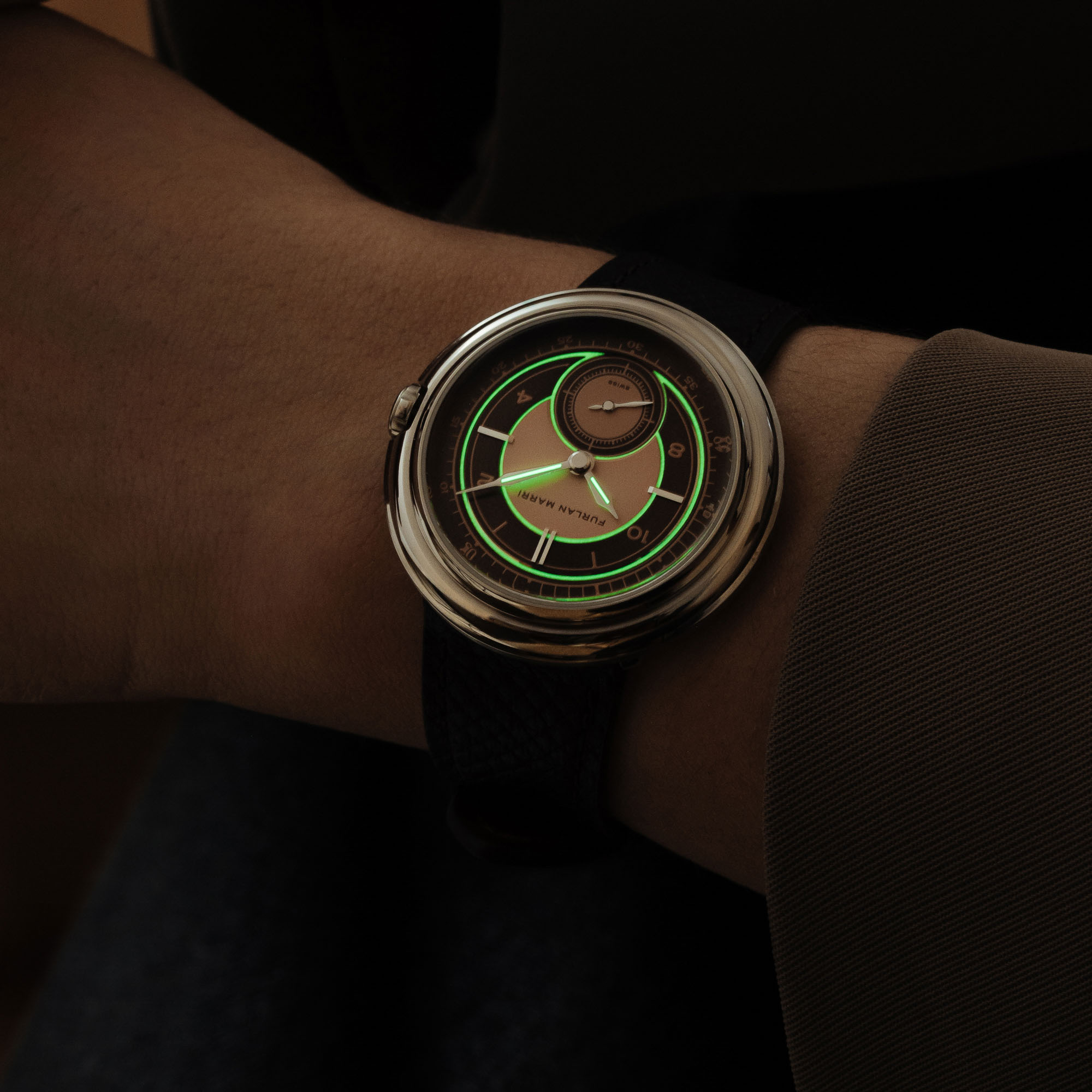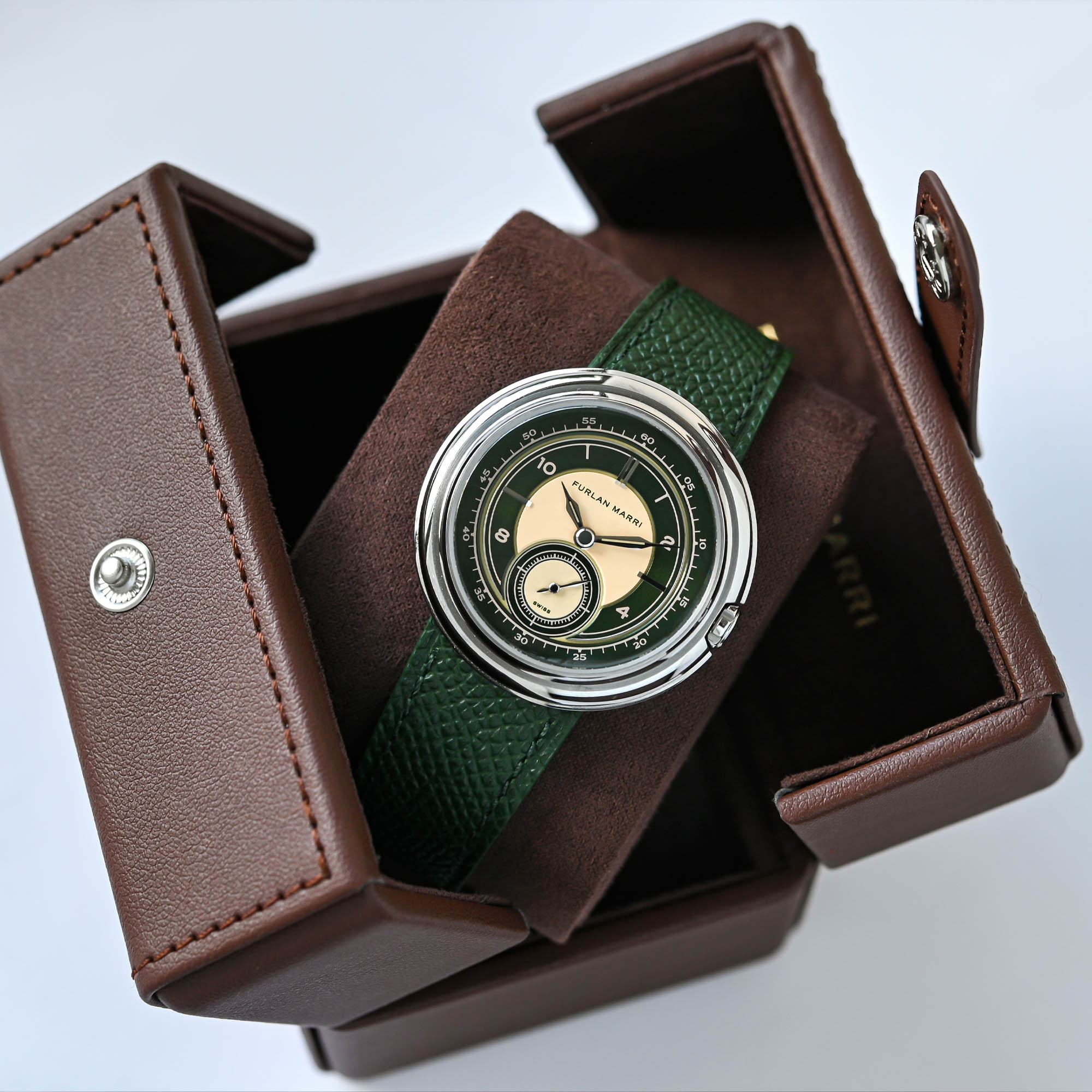 Co-founded by Swiss industrial designer Andrea Furlan and watch collector Hamad Al Marri, Furlan Marri launched on Kickstarter in 2021 with a beautifully designed vintage chronograph powered by a hybrid mecha-quartz engine. The next act, in 2022, was an equally handsome vintage black sector dial equipped with a mechanical movement that won over the MONOCHROME team. Today, Furlan Marri sticks to its vintage designs and mechanical guns and releases a trilogy of Disco Volante models in 38mm cases with manual-winding Peseux movements.