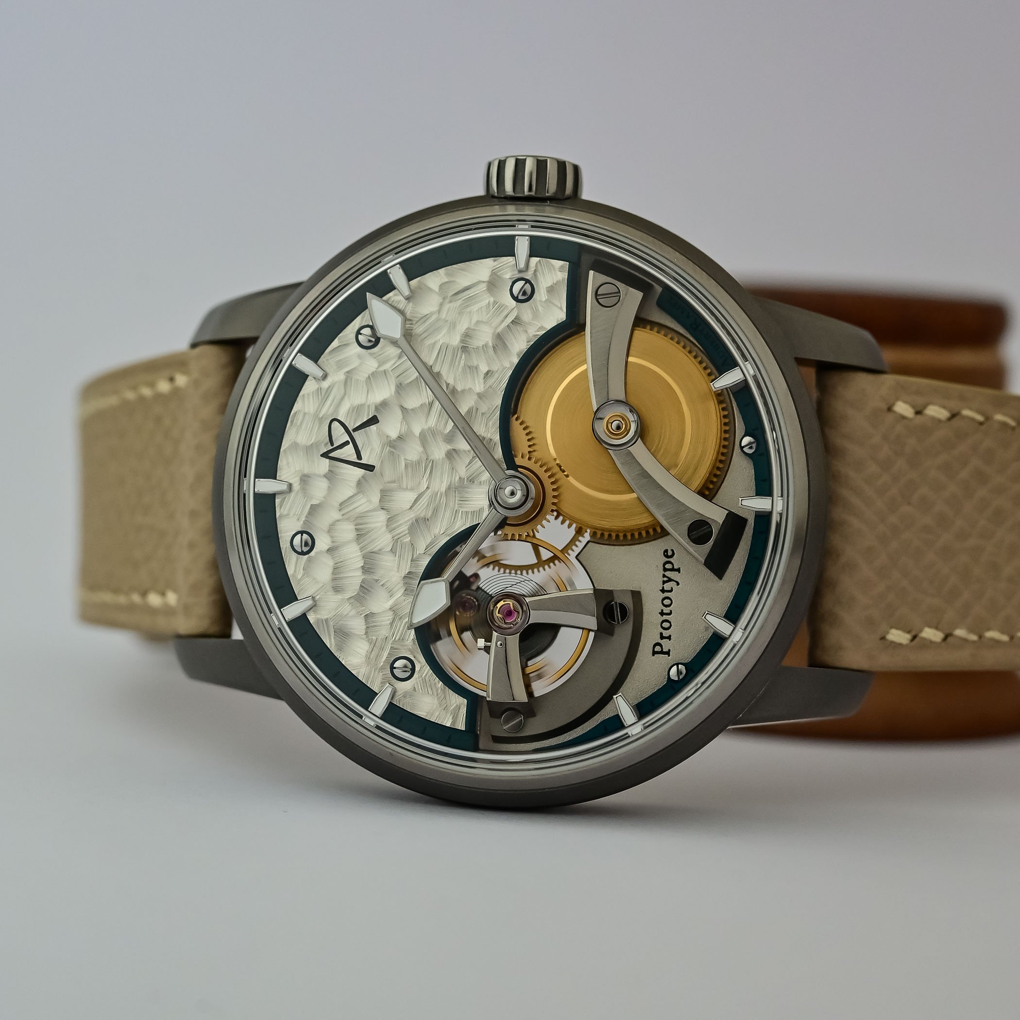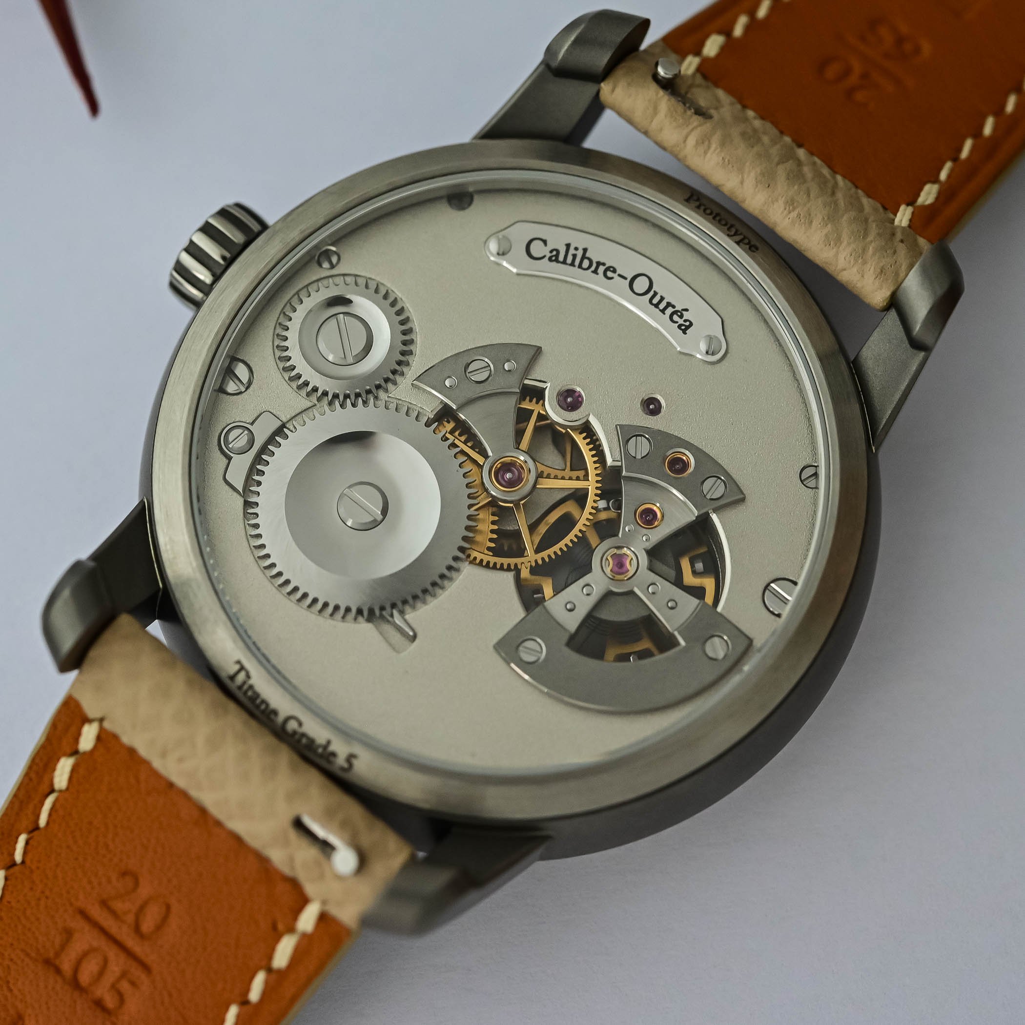 Their first watch, the Ouréa project, was initiated about a year ago, thanks to a pre-series of six pieces that were ordered under subscription, based on digital renderings of the project. These six watches will come with a platinum case. Following these six initial pieces in platinum, 14 watches will be made in titanium, as the one illustrated in this article.