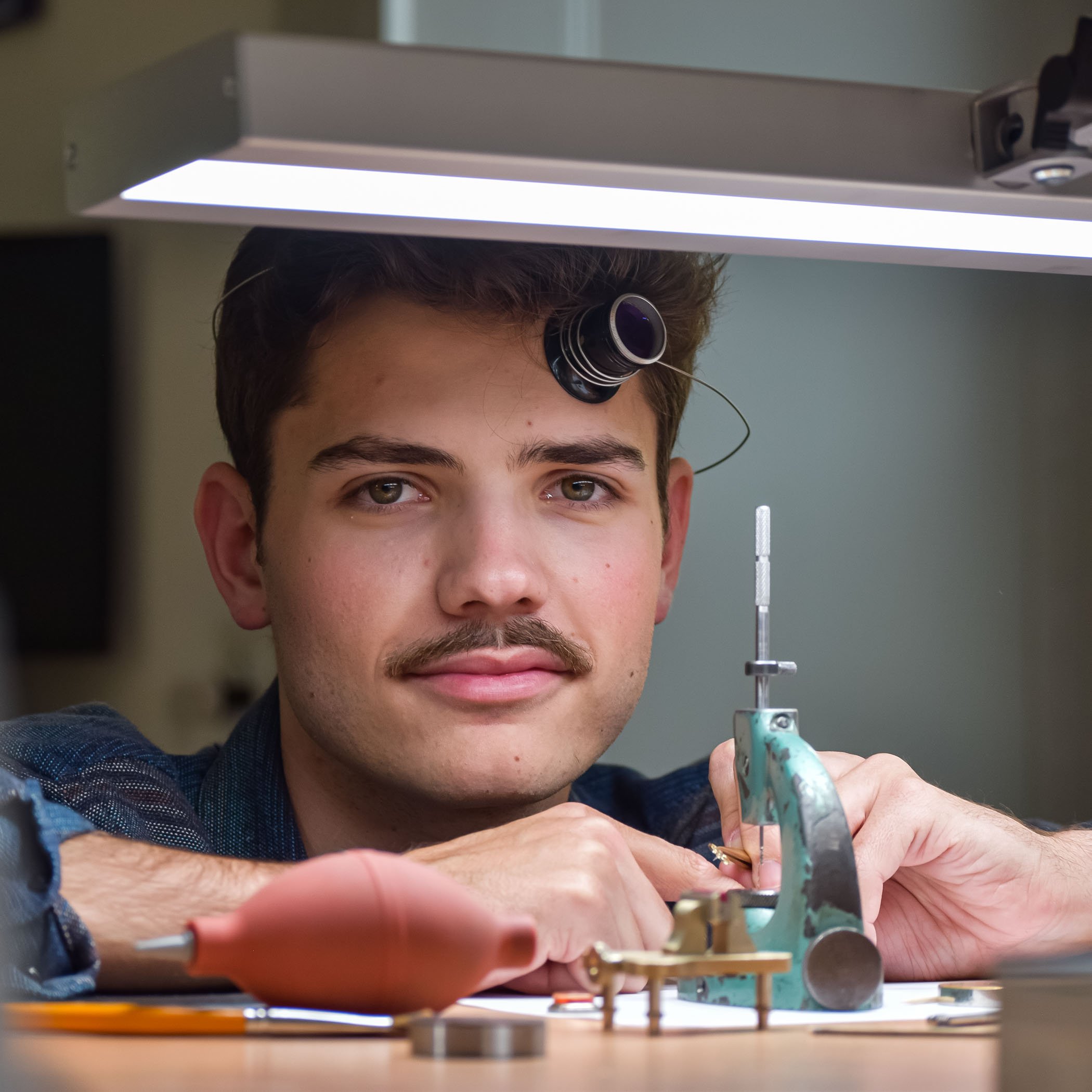 Thomas Aubert (above left) and Alexis Ramel-Sartori (right) are two 24-year-old Franco-Swiss watchmakers who learnt watchmaking at the Lycée Edgar Faure in Morteau, a French city close to Switzerland. They really got to know each other during an internship at Luc Monnet’s workshop. There, they met Simon Brette, for whom they manufactured and finished parts.