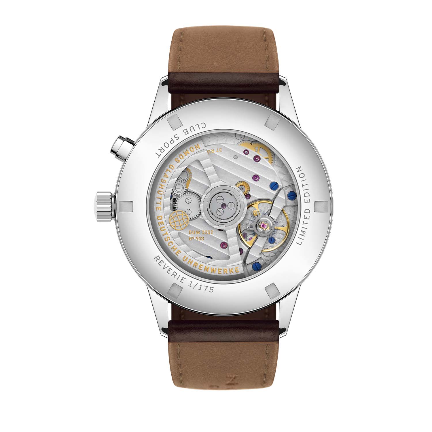 Once again, Nomos demonstrates its keen eye for creating colourful, contemporary dials. The Reverie has a soothing, sunray-brushed, champagne-coloured dial with yellow, sand and wine red accents, while Roam’s champagne dial features light blue, sand and green details. More than just pleasing colour combinations, they highlight certain functions and make consulting local and home time foolproof. Like earlier editions, the contrasting colour of the city ring on the periphery represents the 24 time zones using 24 city airport codes (IATA). Once the city has been selected via the pusher, a yellow or orange bar (depending on the model) appears beneath the three-letter IATA code at noon, and the time around the world can be consulted on the fixed minute track with its + and – values.
