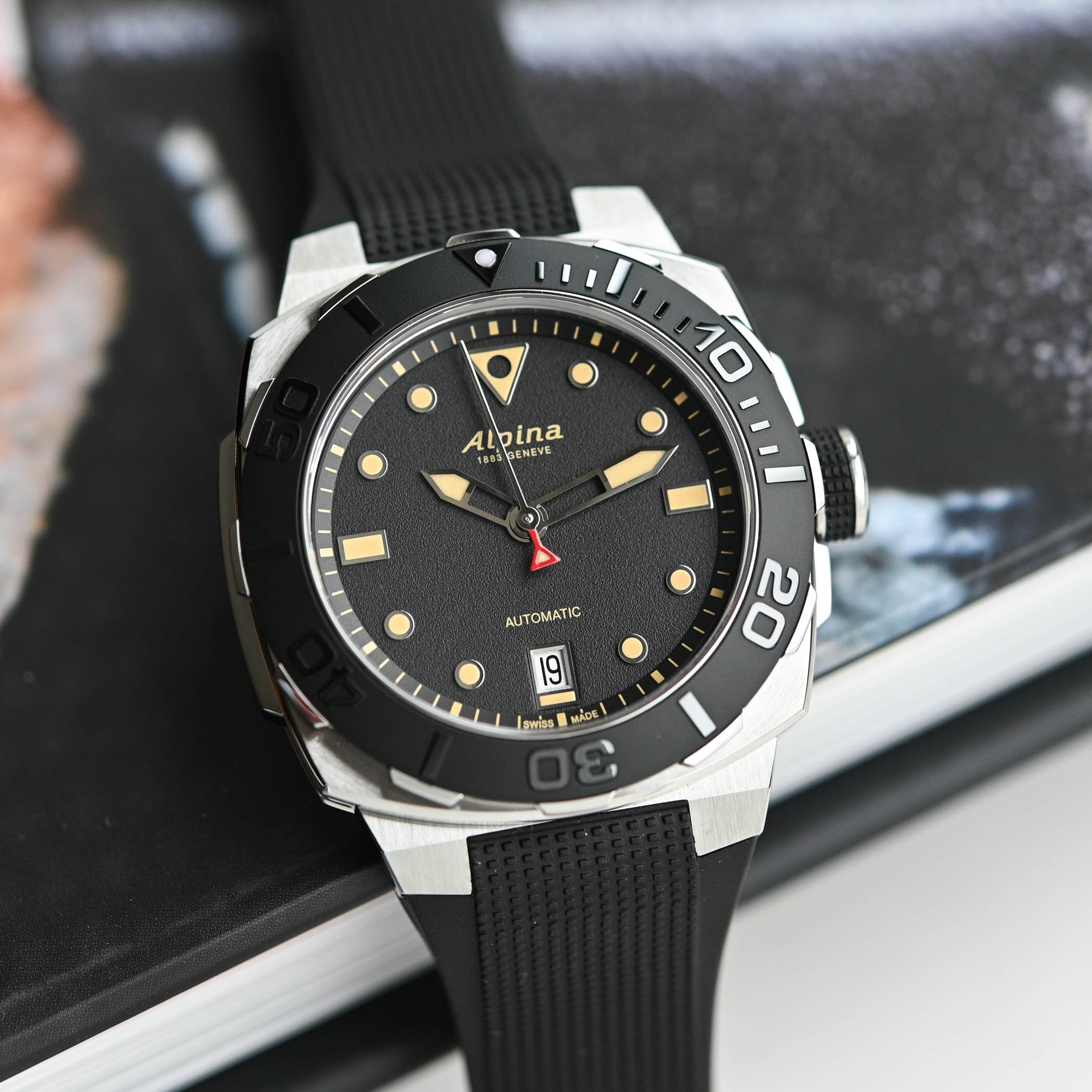 Alpina has steadily carved out a niche for robust sports watches that balance land and sea credentials, and the Seastrong Diver Extreme Automatic is a good example of this dual spirit. Introduced last year in a compact 39mm Extreme cushion-shaped case with 300m water resistance, it was already a natural fusion of the Alpiner’s rugged architecture and the Seastrong’s tool-watch spirit. For Geneva Watch Days 2025, the collection welcomes two new variations, one with vintage flair, the other with a more tactical outdoor spirit.