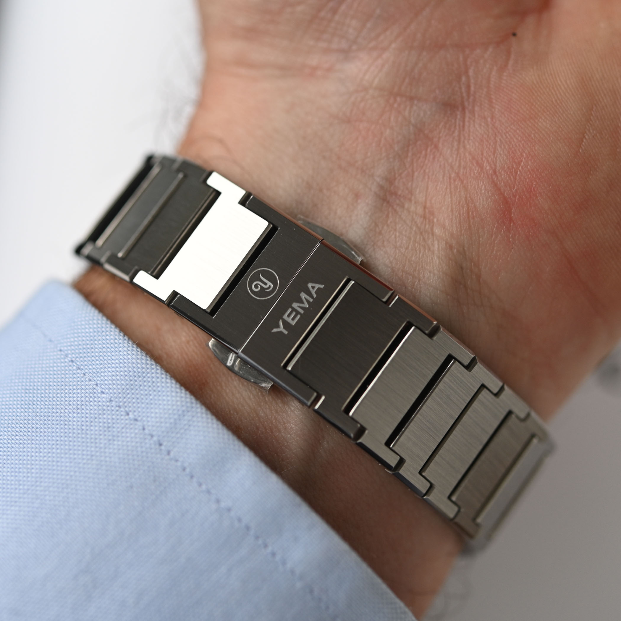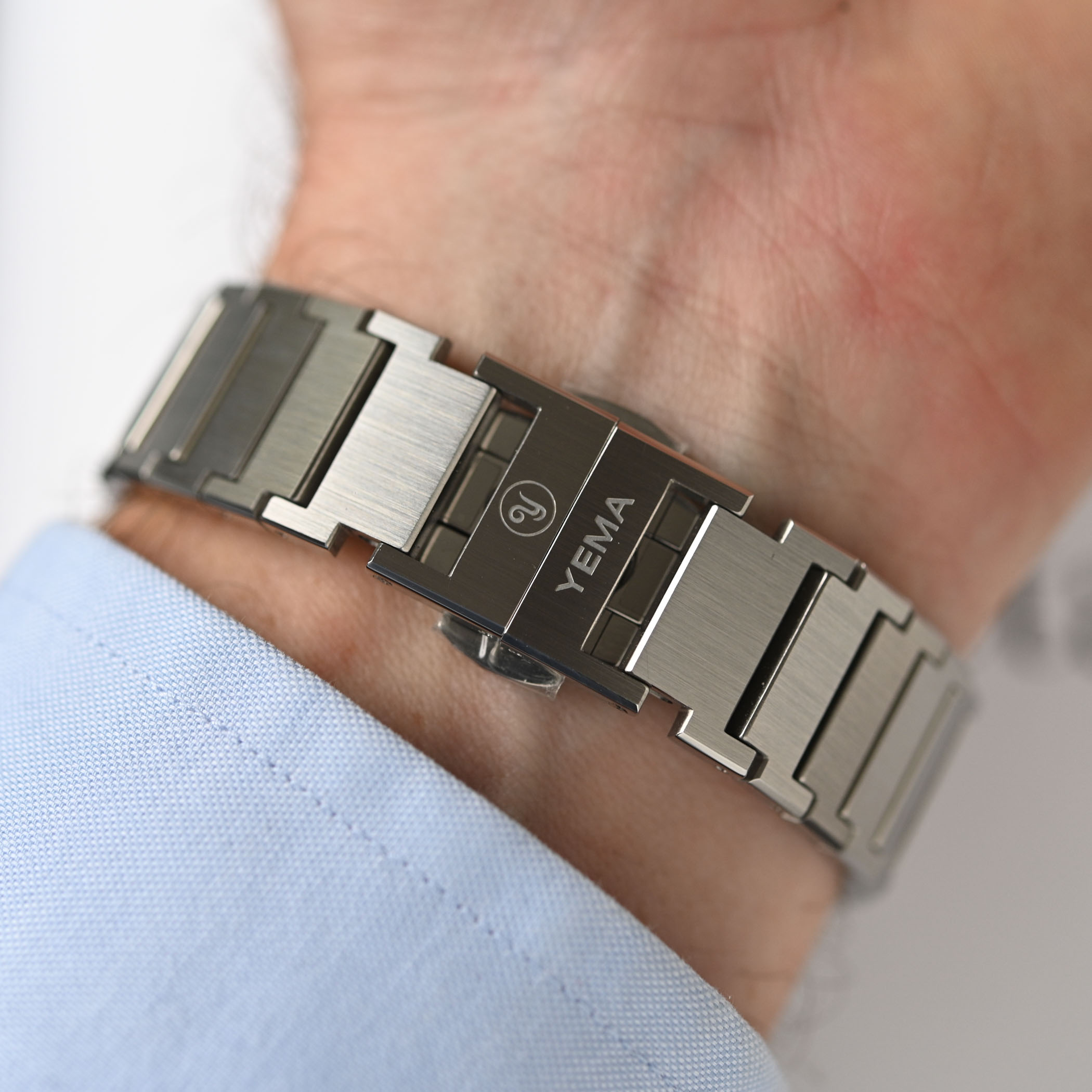 An important part of such sporty-chic steel watches, the bracelet of the Yema Wristmaster Slim has also been upgraded. Measuring 24mm at the lugs, it is brushed on top, polished on the sides with nice bevels, and tapers nicely up to a new butterfly folding clasp. It now includes a convenient yet elegantly integrated micro-adjustment mechanism allowing a 1.5mm to 3mm length adjustment – not something you’ll find often in this price range, and it must be applauded.