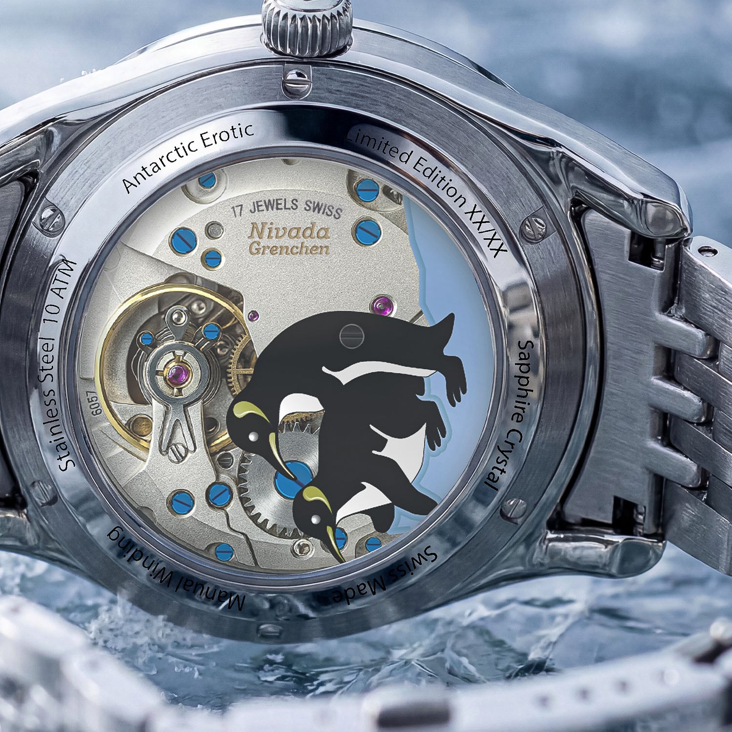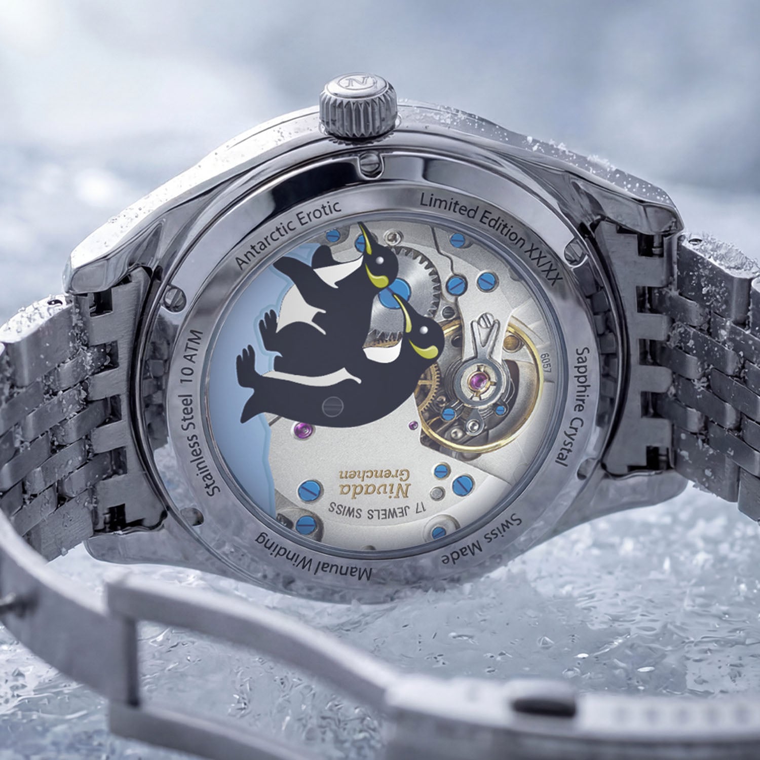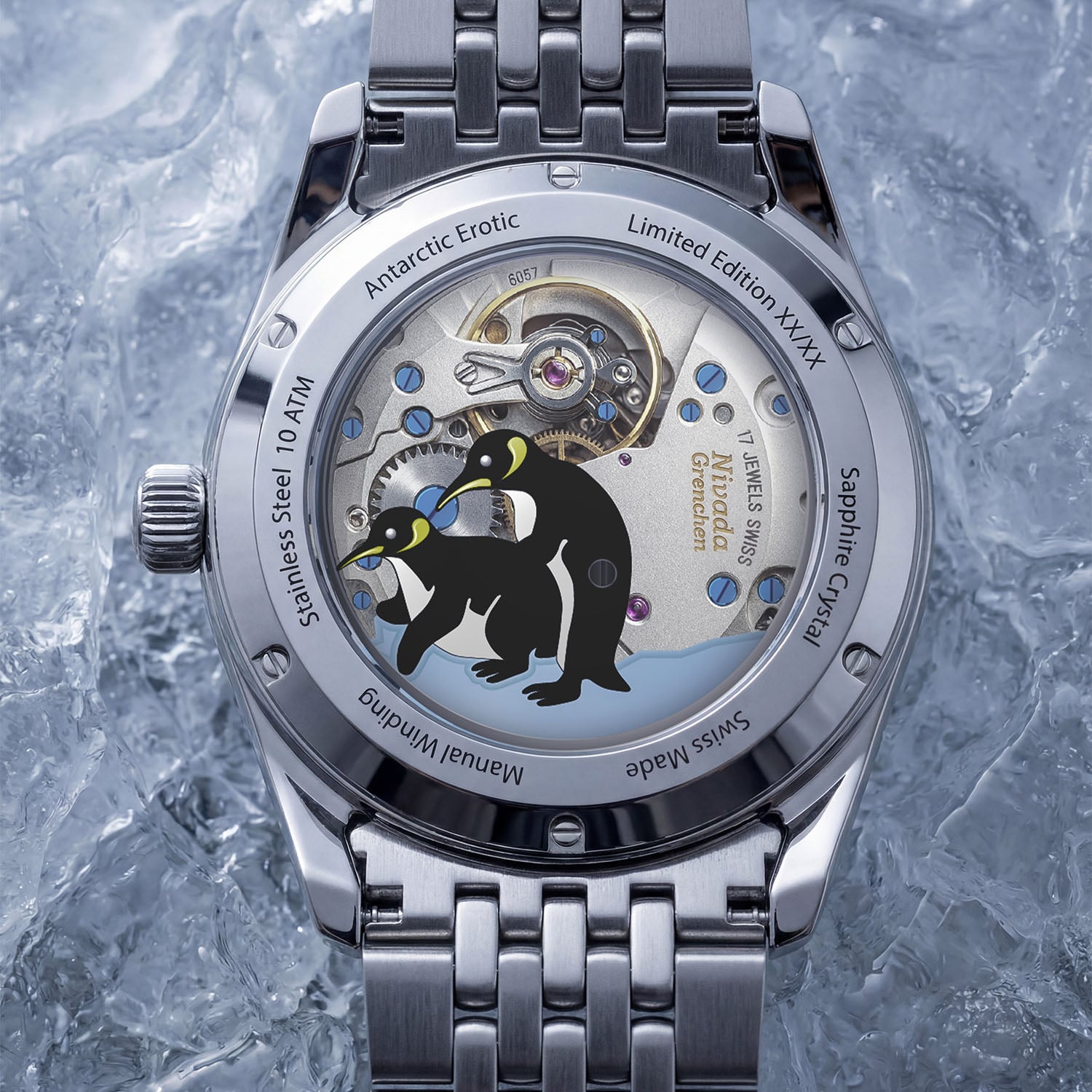 Nivada Grenchen has always seemed like a brand that embraces the fun side of life, and its latest release, the Antarctic Erotic, is proof of that. In watchmaking, erotic or animated scenes have existed for centuries, often hidden away and revealed only on demand. Nivada uses this heritage with a lighter, more contemporary tone without provocation, but surprise, humour, and interaction. Built on the familiar Antarctic 38mm platform, this new series keeps the core idea of a robust, vintage-inspired daily watch, but adds a touch of humour that feels unexpected, but very much on-brand.