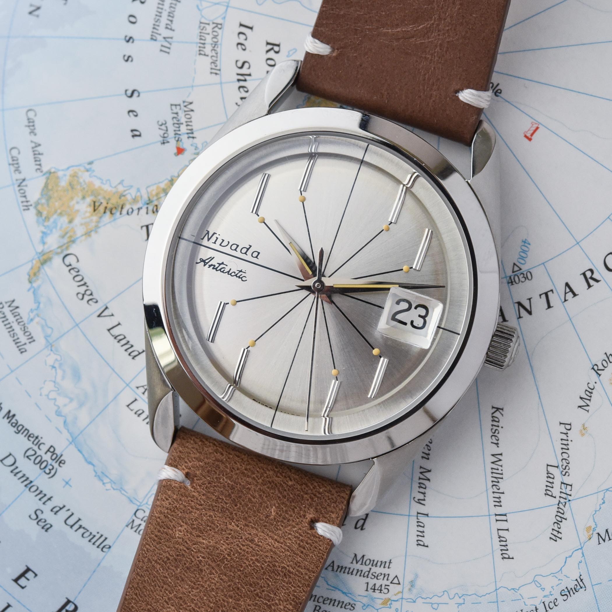 The latter is one of the brand’s most classic models. In 1930, Nivada Grenchen was one of the first companies to manufacture automatic watches. This led to the creation of Nivada Grenchen’s first waterproof automatic watch called the Antarctic in 1950. The watch was worn by the members of the American Navy’s Deep Freeze 1 during their expedition to the South Pole from 1955 to 1956. This watch has since been re-edited by the brand with faithful designs, yet for the moment, only focusing on the most classic dials. But now, one of Nivada Grenchen’s most quirky, original, daring dials is back.
