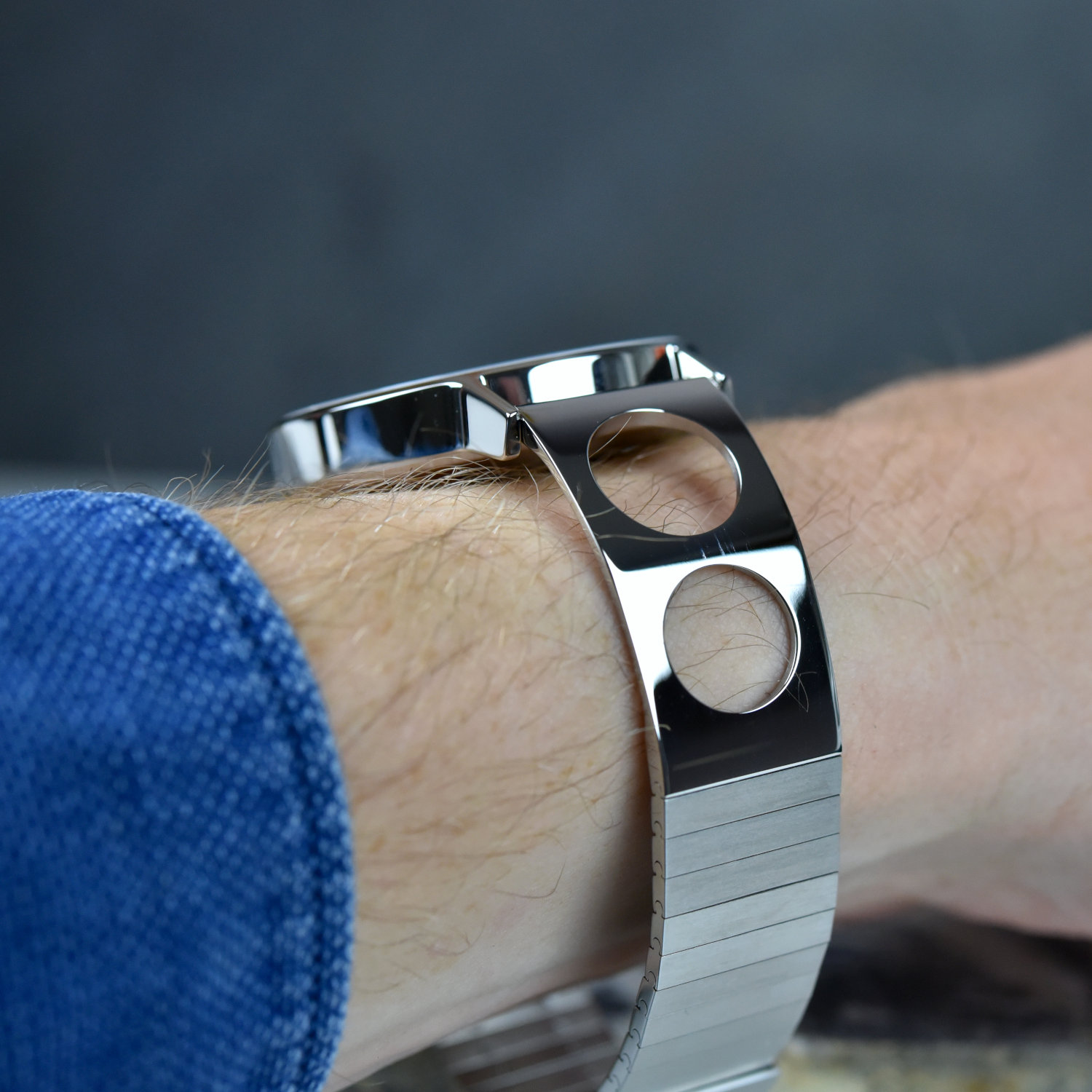 It’s cool. I like it, but because part of that bracelet doesn’t bend, and because of the long lugs that Nomos is known for, I’m concerned that it wouldn’t fit comfortably. It also looks like a scratch magnet.