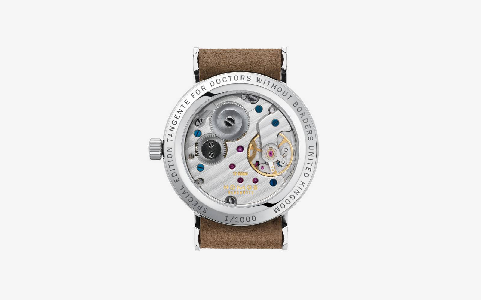The MSF edition of the Tangente would bear the special engraving “Special Edition for Doctors without Borders” in the caseback along with its respective country (UK and USA.) It will also have a small inscription “Doctors without Borders” on the dial below the 6 o’clock marker. These models will have black oxidized hands in lieu of the tempered blue ones, and a red twelve to signify the color of the MSF organization. And last but not least, for every purchase of a NOMOS-MSF piece, the company will be donating 100 Euros / Pounds / Dollars to the Nobel Peace Prize winning organization. The overall goal is to raise the equivalent of over one million USD in support for MSF.