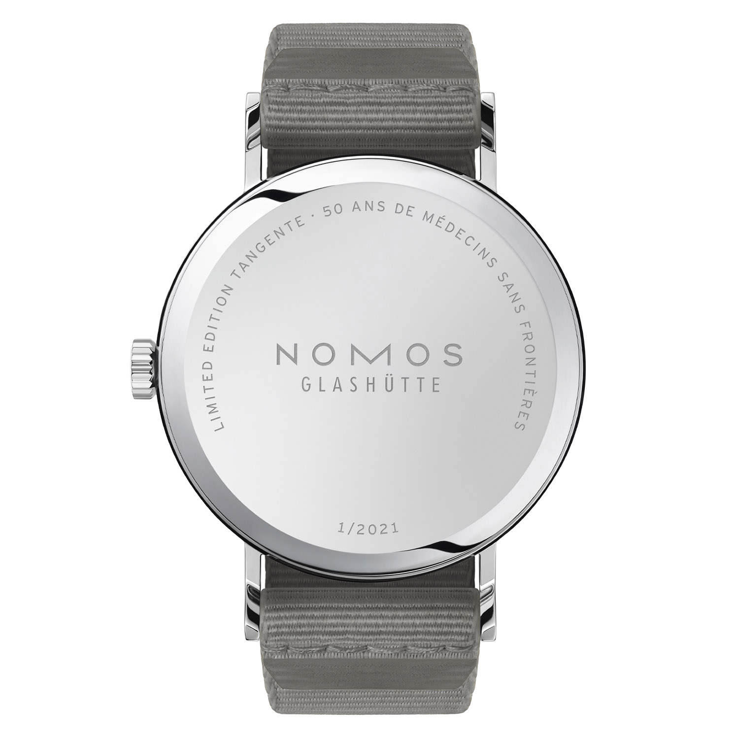 Nomos has been actively supporting Médecins Sans Frontières (MSF)/Doctors Without Borders since 2012. To date, over 10,000 watches have been produced to raise funds for MSF, all distinguished by the red numeral 12. This year also marks the 50th anniversary of Doctors Without Borders, and Nomos will support the international humanitarian medical organisation with 2,021 pieces of its Tangente 38 watch. For the first time, the Nomos watches for MSF will be available for sale worldwide. The sale of each Tangente 38 will generate EUR 100 for MSF. If all 2,021 pieces are sold, this would mean a total contribution of EUR 210,000 to the medical organisation.
