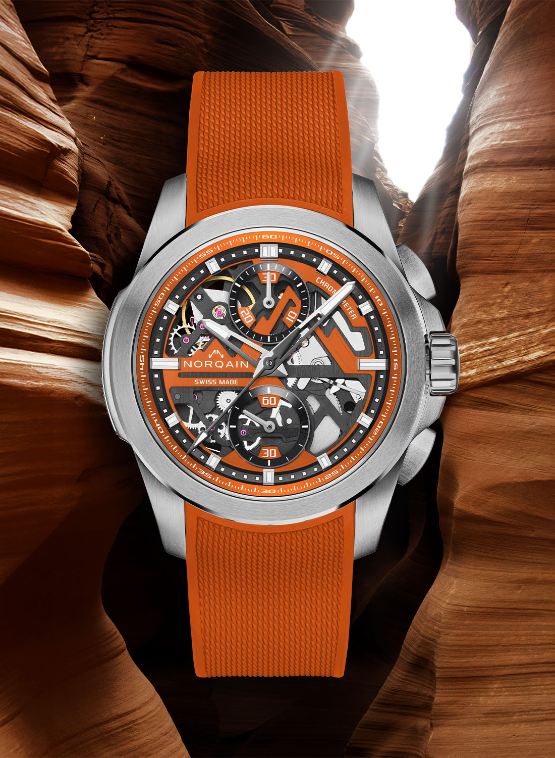 The New Norqain Independence Skeleton Chrono 42mm Orange