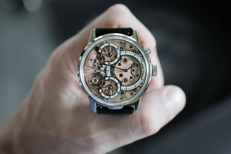 This photo perfectly shows the incredible finish of the Sport Chronograph’s case. That’s one serious chunk of gold!