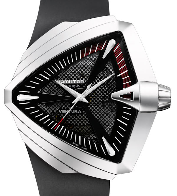 Today the Ventura is almost a complete collection of its own. Hamilton offers the model with a wide variety of movements (even an automatic) dials and straps, and in 2010 even released two special editions to commemorate what would have been Elvis Presley’s 75th birthday. One was the re-issue of the model as he wore in Blue Hawaii, the other was, what could best be described as, a Ventura on steroids. The Ventura design was adapted to the 21s century and bolder then ever. The watch was even more streamlined and sculpted in an oversize pvd case with inside an ETA 2824-2 automatic movement. But whither you choose this model or the ones closer to the original, the common factor that all Ventura’s share is that futuristic design that even in 2011 is surprisingly refreshing.