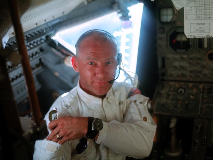 Aldrin spoke about the actual use of the Speedmaster in space. On the Moon: according to Aldrin the digital counter on the astronauts suit, which indicated the time spent outside the lunar lander and air used from the breathing apparatus, did not always work perfectly. A good old-fashioned mechanical backup, the Omega Speedmaster on a long velcro strap, was used by him during the moon walks. Inside Apollo 11: the Speedmaster played a pivotal role in keeping the team informed about the actual time on Earth. Mission control was in Houston, Texas, and while Apollo 11 was orbiting Earth, the three gents inside didn’t ‘feel’ day & night as we do on Earth. With the Speedmaster on the wrist it was easy to know the time on Earth, so they felt more at home, and knew when talking to mission control, who were on 8-hour shifts, who was awake and who not. The astronauts returned home safely on July 24, 1969.