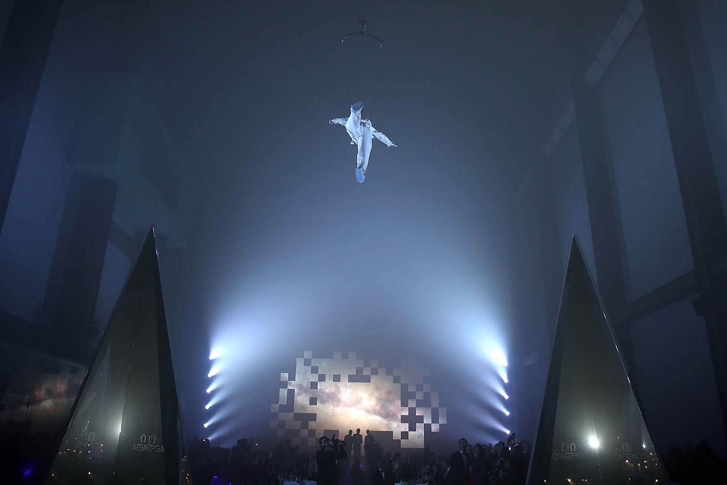 The night was hosted by professor Brian Cox at London’s Tate Modern, which was transformed into what could be mistaken for a big hall at NASA. Once everyone had passed by the huge table with rare and highly collectible Speedmasters, and found his or her place at the tables, we were welcomed by professor Brian Cox and Omega’s CEO Raynald Aeschlimann. Subsequently George Clooney and Buzz Aldrin came, and told the audience about how the Speedmaster became part of their lives. Shortly after the dinner was about to start, however not before we managed to open the ‘Lost in Space rescue kit’. There were several speeches during the evening, and even an astronaut flew through the huge hall. Omega put together a marvellous anniversary event for a watch that can truly be called an icon. The 60th anniversary of Omega’s Speedmaster with George Clooney and Buzz Aldrin as guests of honour at the “Lost in Space” evening, was a befitting theme which paid tribute to the Speedmaster’s unrivalled legacy in space exploration. For now I’ll let the photos do the talking…