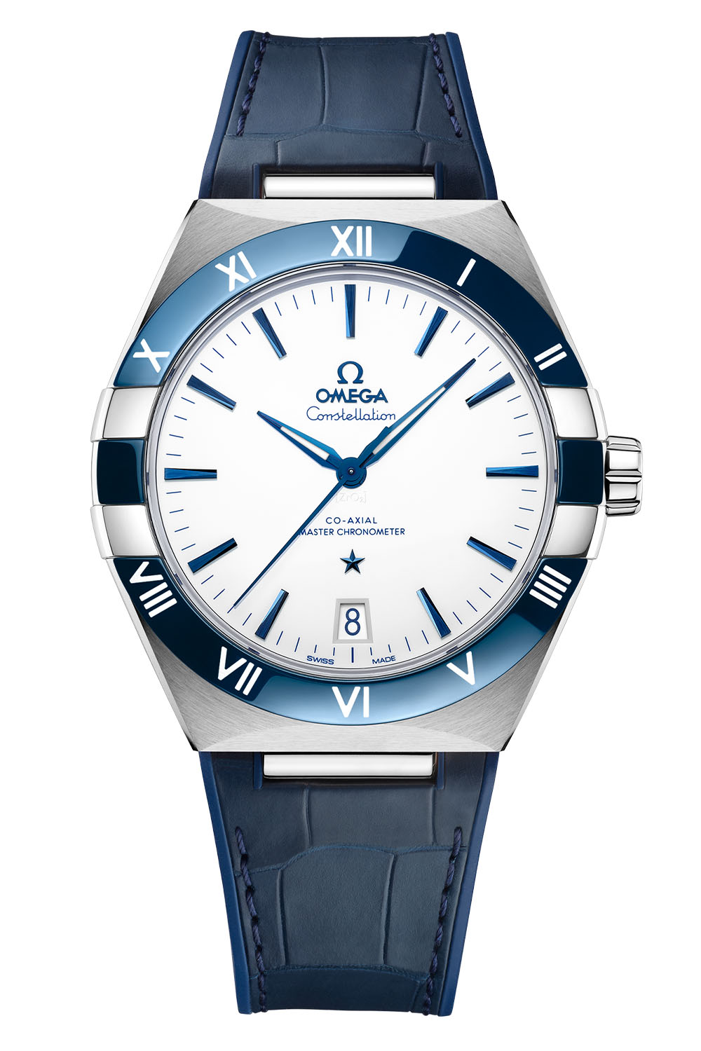 The new Omega Constellation 41mm Master Chronometer collection will soon be available from retailers and boutiques. The steel/white/blue model will be priced at EUR 6,800. The three steel-and-gold versions will be priced at EUR 9,200.