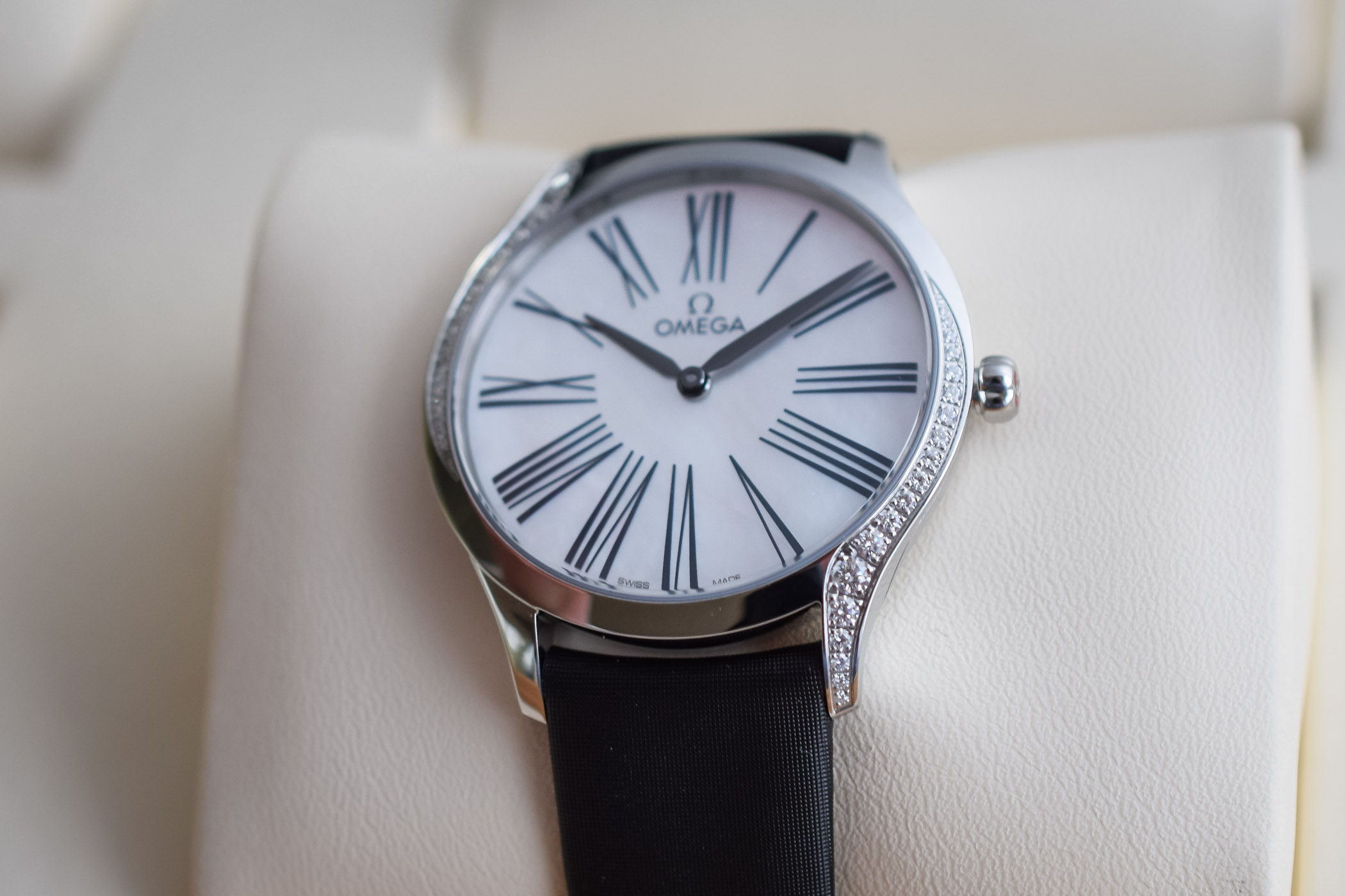 It is strange then to see that the new ladies’ De Ville Trésor watches have discarded a slim mechanical movement in favour of a quartz movement. Fitted with Omega’s calibre 4061 quartz movement, the choice was no doubt motivated to contain costs and to appeal to young women who want the look and feel of a reputable brand on the wrist without the hassle of having to wind a watch.